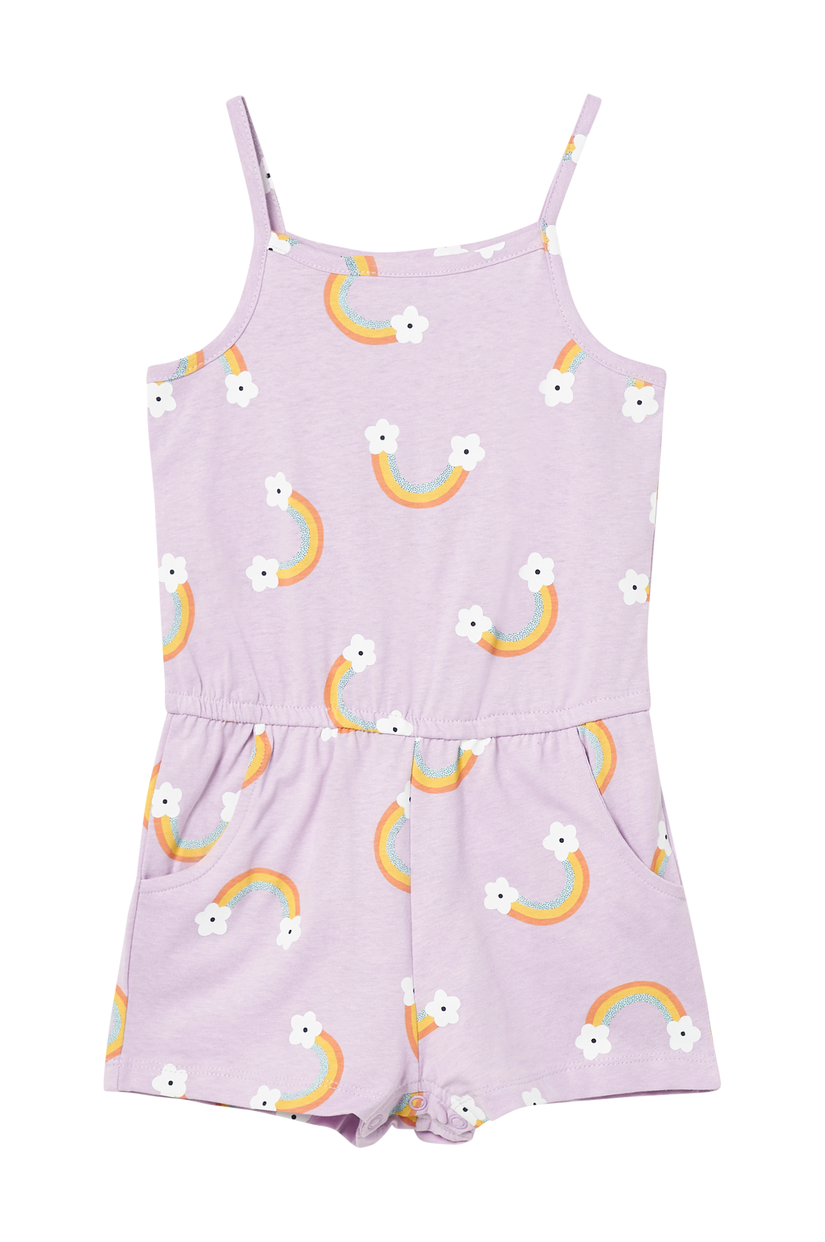 • Ærmeløs buksekjole med tynde skulderstropper• Elastisk bånd ved taljen• Korte ben• To lommer