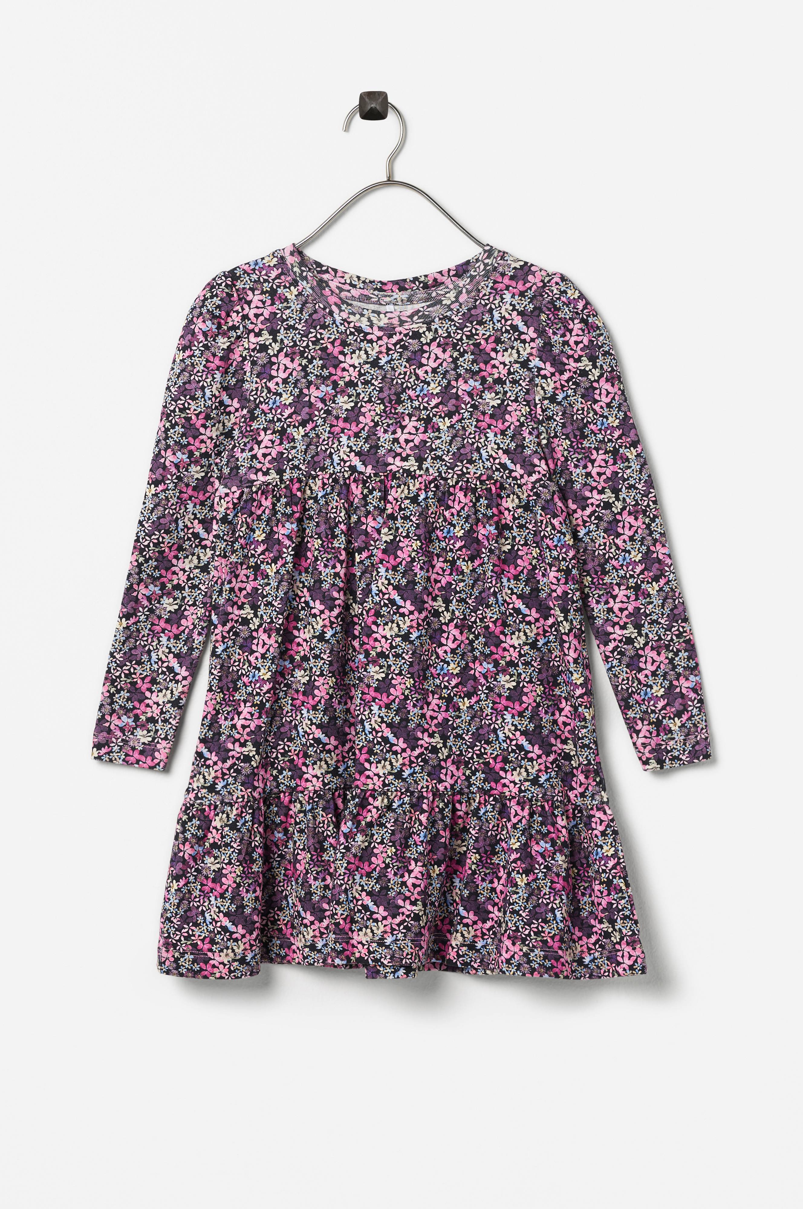 • Langærmet kjole i jersey • Model med svaj • Volant nederst • Produktet indeholder økologisk bomuld, som er dyrket uden kemiske sprøjtemidler, kunstgødning og genmodificerede afgrøder (GMO). Dette betyder et sundere arbejdsmiljø for landmænd og bedre jord.