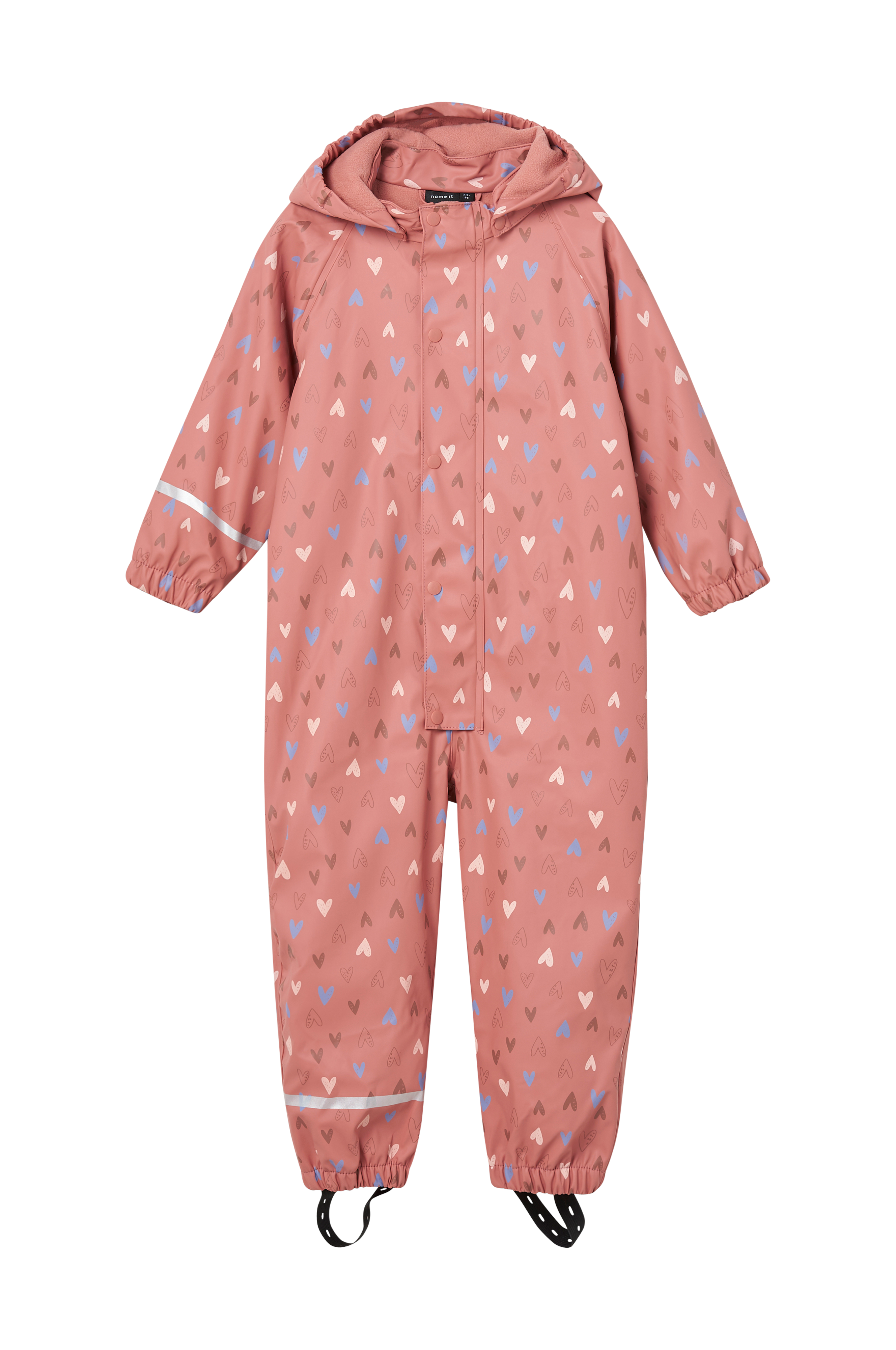 • Forseglede sømme • Vandtætte • Vindtætte • Aftagelig hætte med fleece for • Lynlås • Vindflap med trykknapper • Elastisk bånd ved manchetterne og ved enden af benene • Justérbare, aftagelige fodstropper i silikone • Reflekterende detaljer • Fleece for på toppen • Vævet, glat for i ærmerne og ved enden af benene