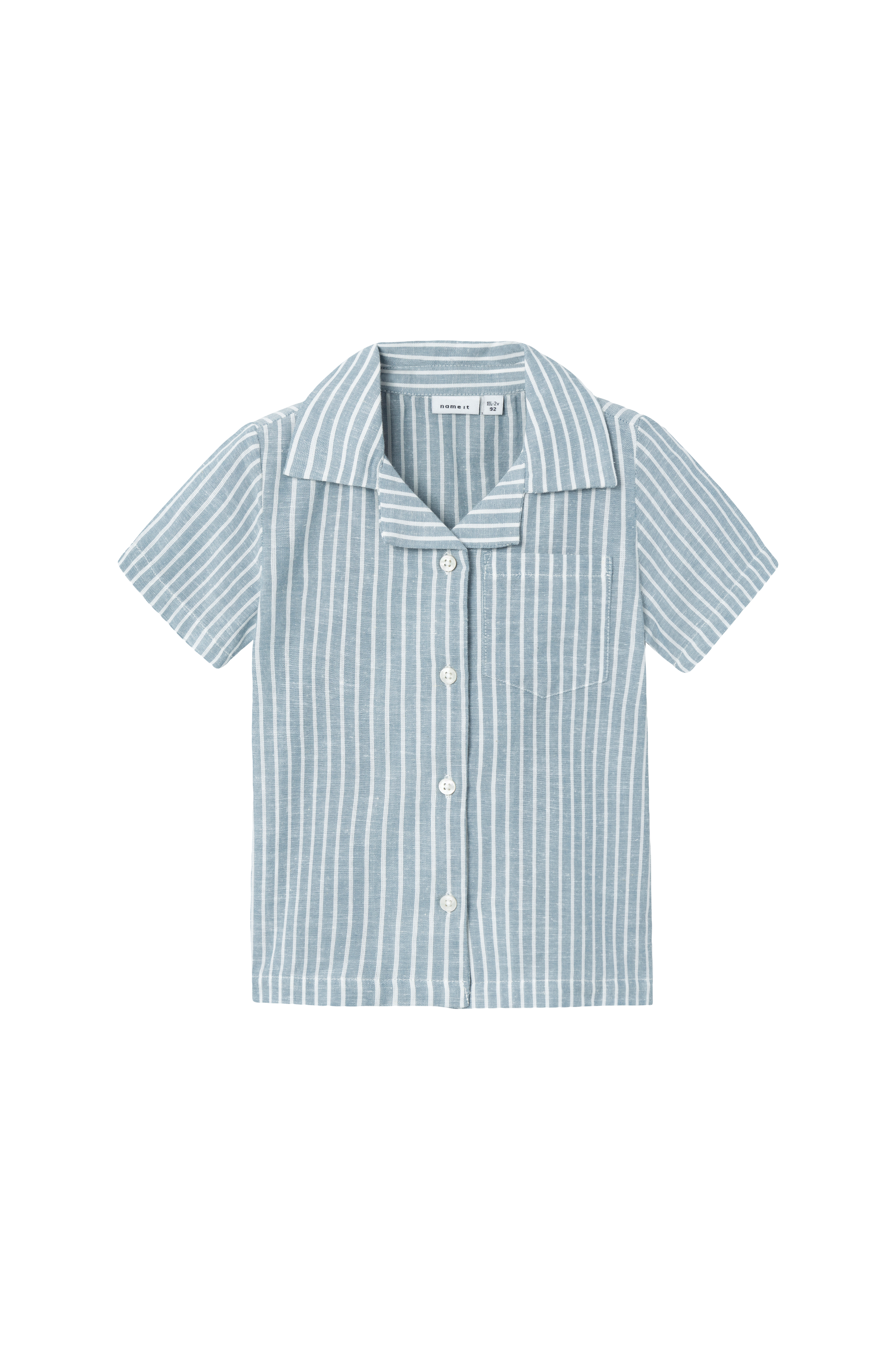 • Stribet skjorte i hørblanding• Kort ærme• En brystlomme