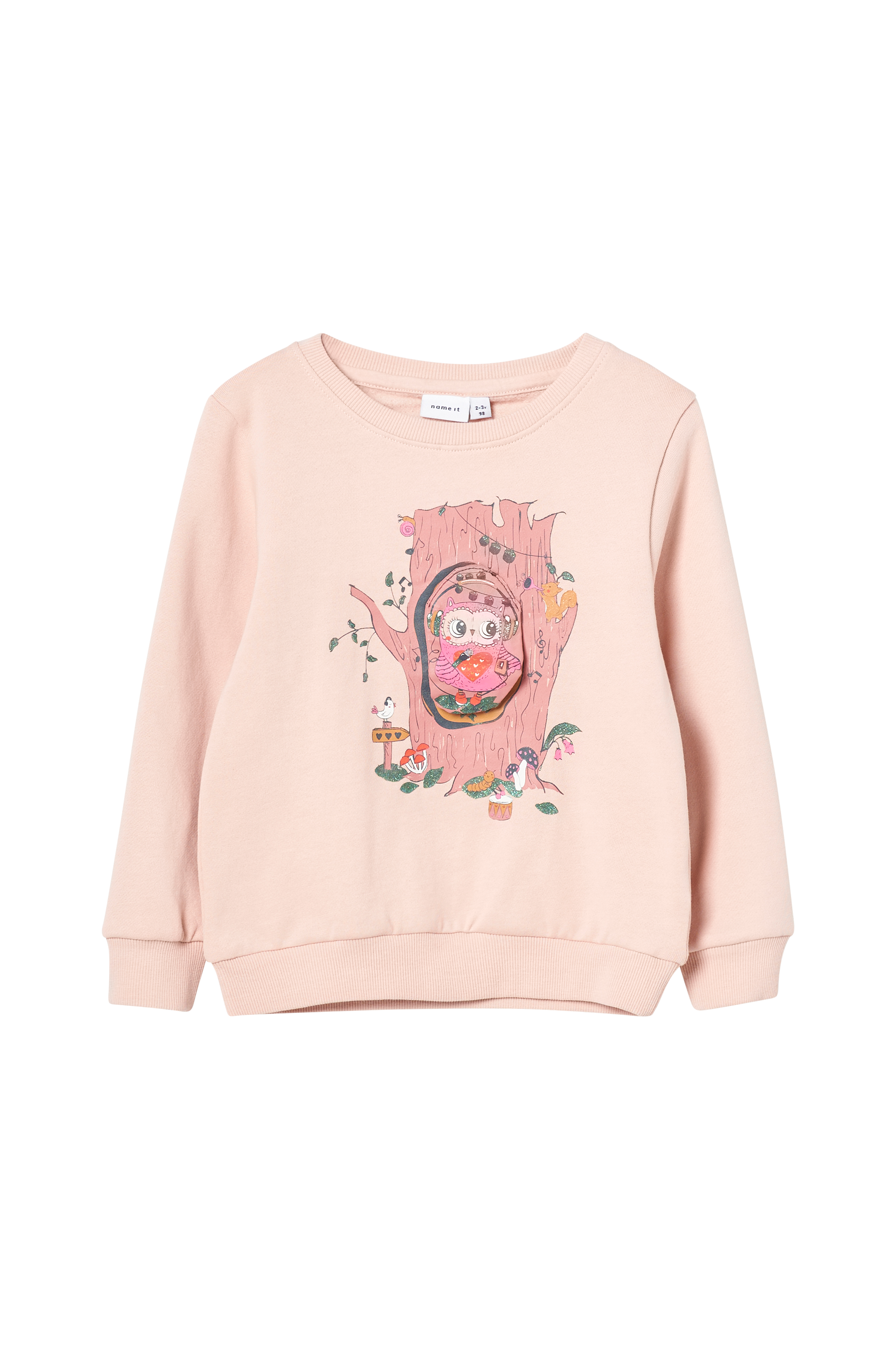 • Ribkant ved ærmeafslutningerne, nederst og i halsen• Tryk med applikation foran• Blød, børstet inderside