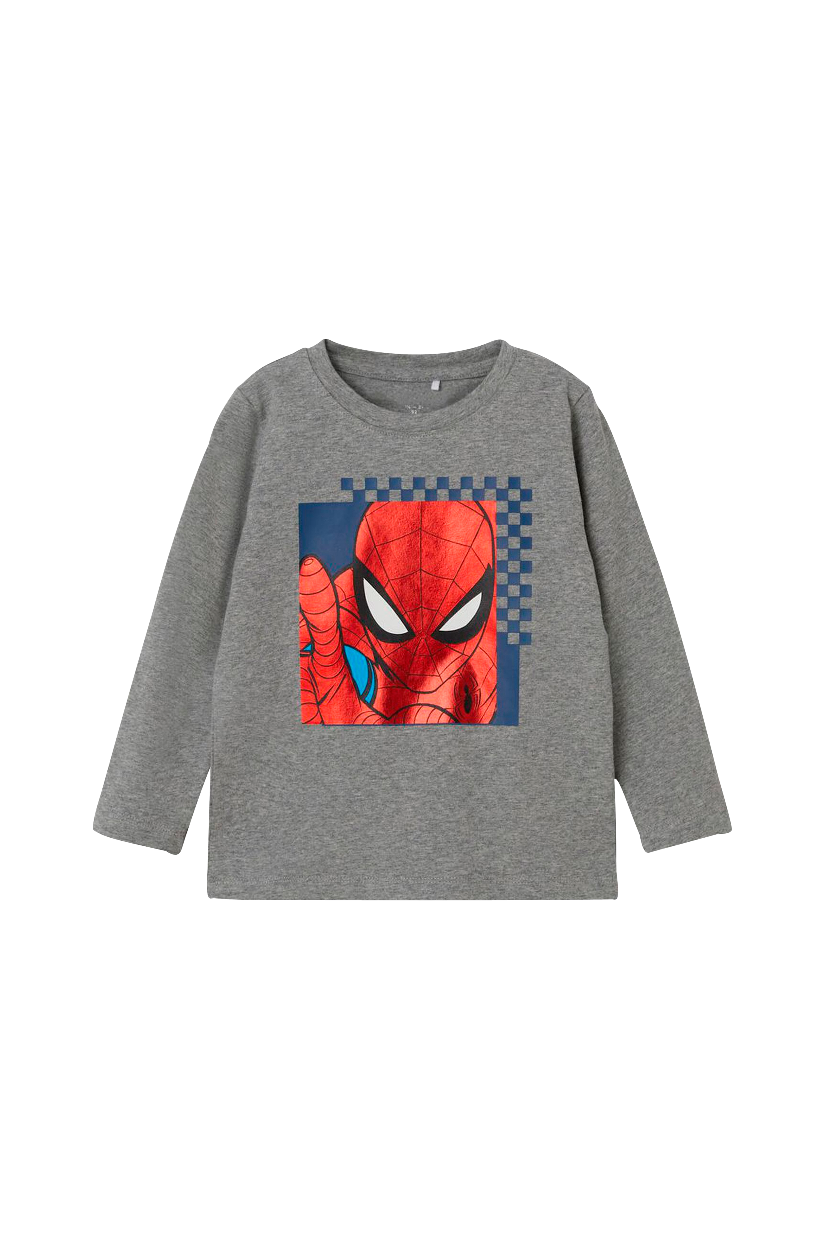 Langærmet t-shirt med blankt metallicprint foran. Rund hals.