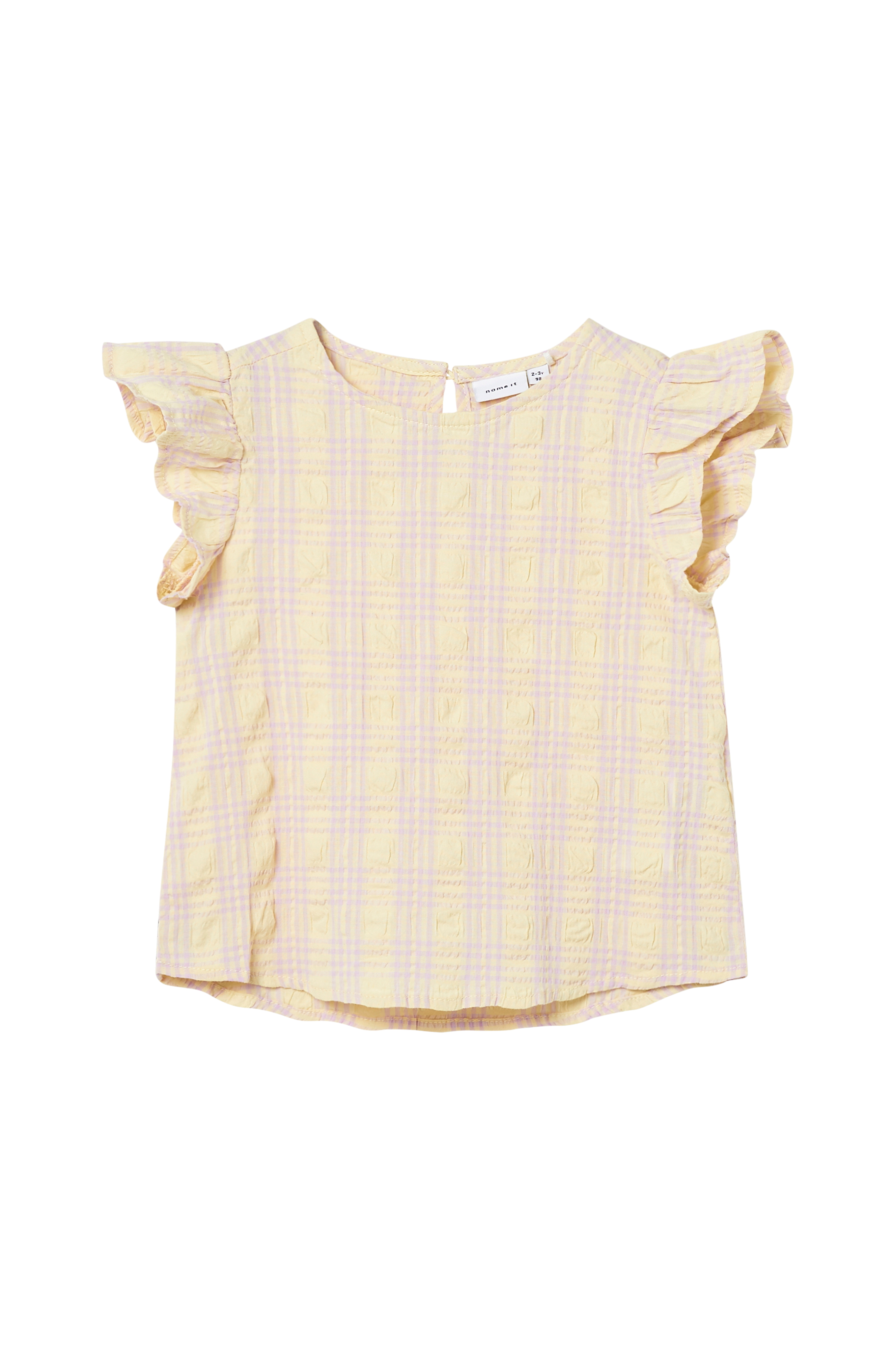 • Top i bomuld• Stof med strukturmønster• Rund hals• Slids med knap i nakken• Korte flagrende ærmer
