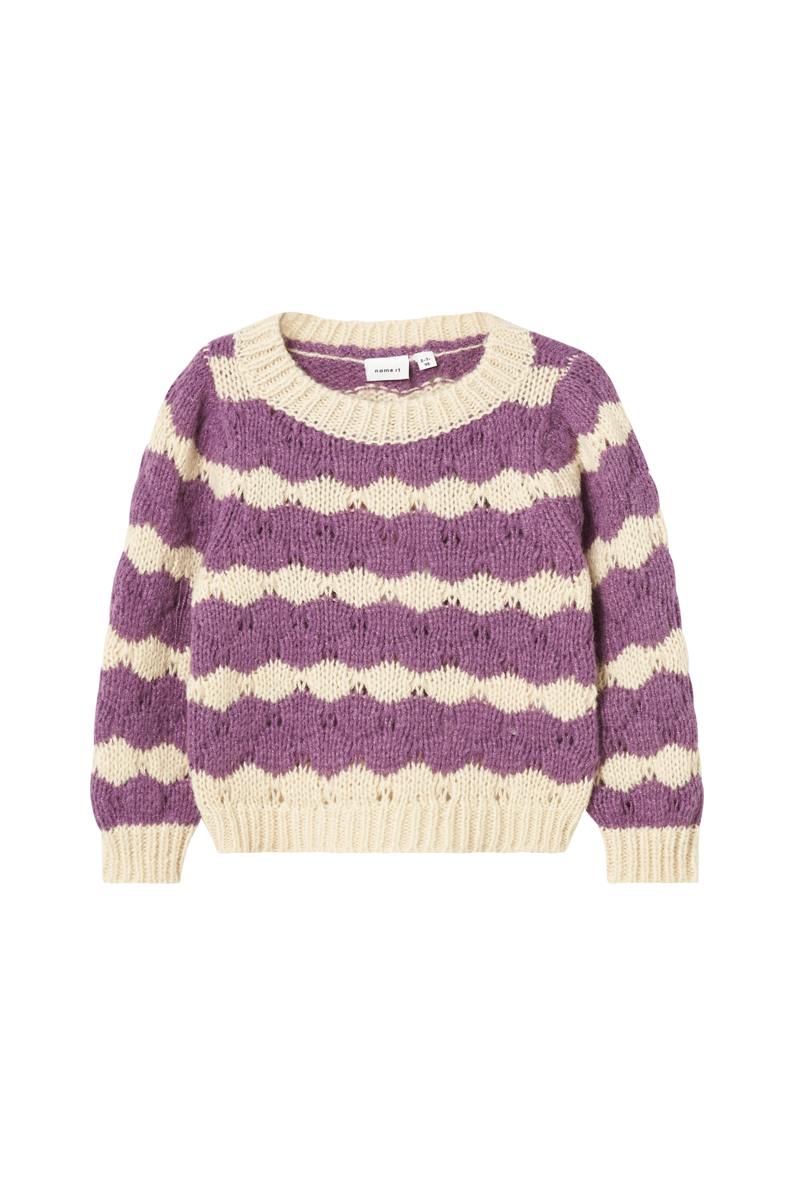 • Strikket, blød trøje• Mønsterstrikning med hulmønster• Rund halsudskæring• Ribstrik ved manchetterne og nederst