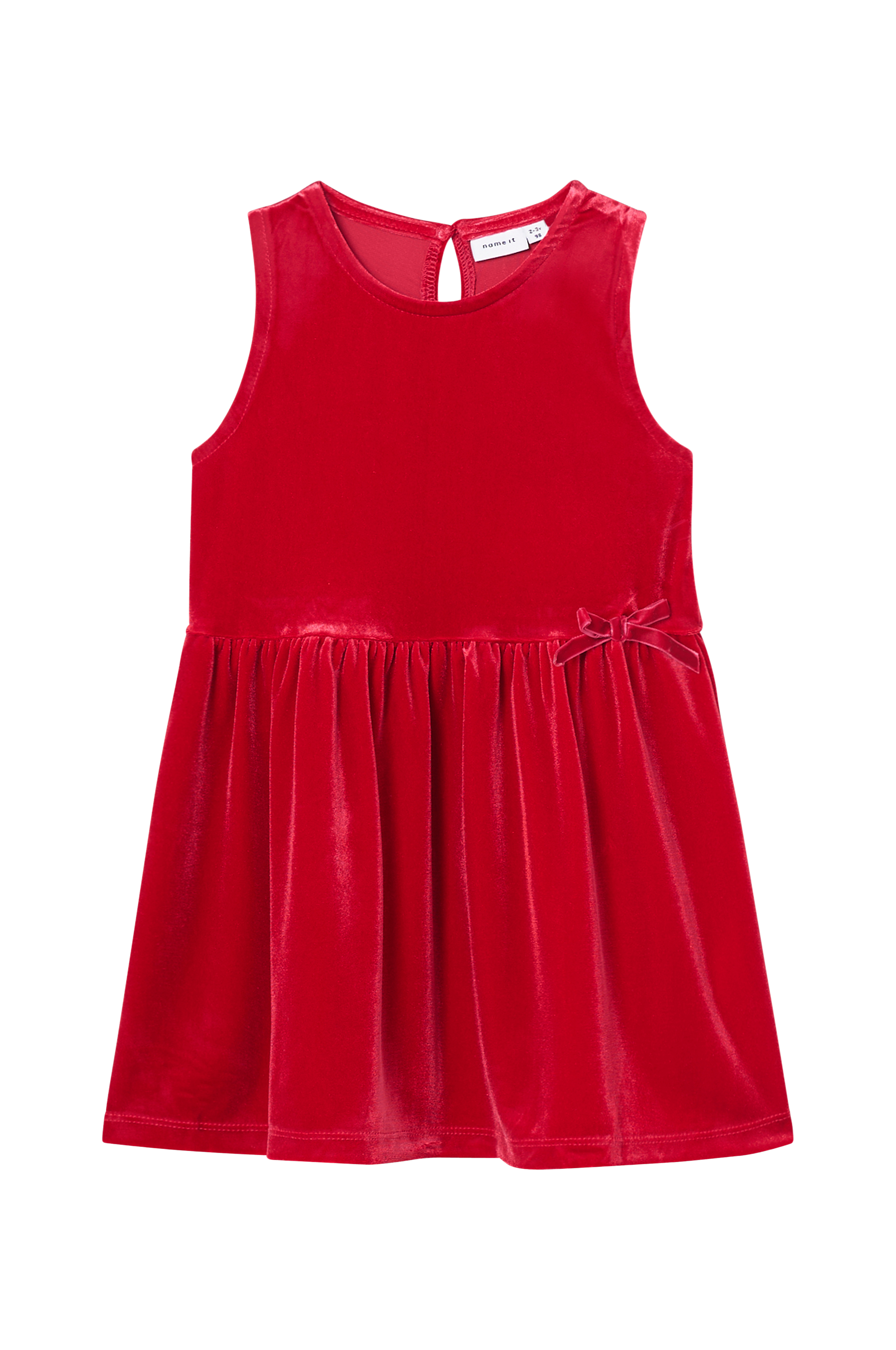 • Kjole i blød velour• Ærmeløs model• Ventilation med knap i nakken• Lille sløjfe ved taljen