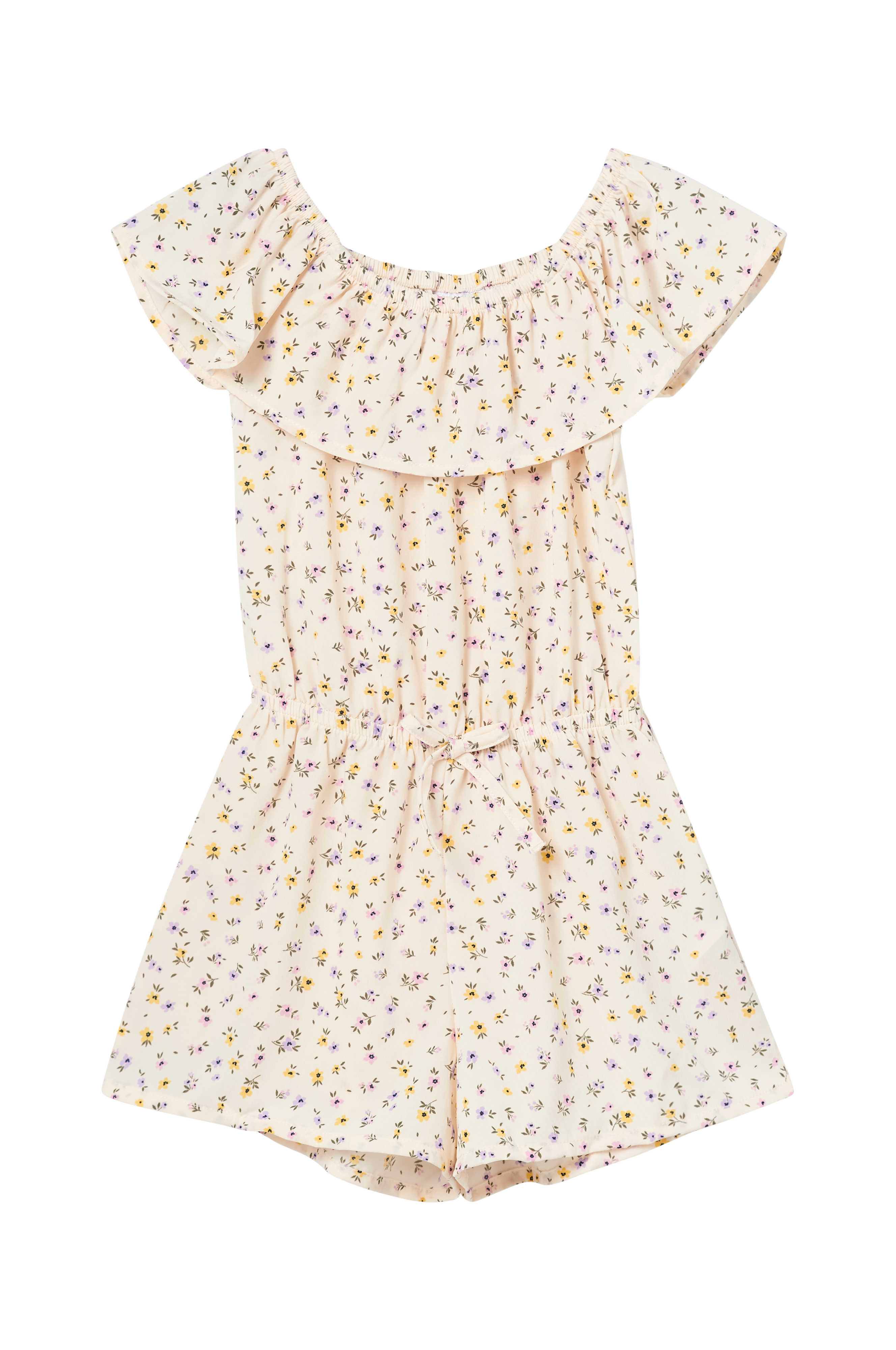 • Elastisk halsudskæring med volant• Elastik ved taljen• Korte, brede ben
