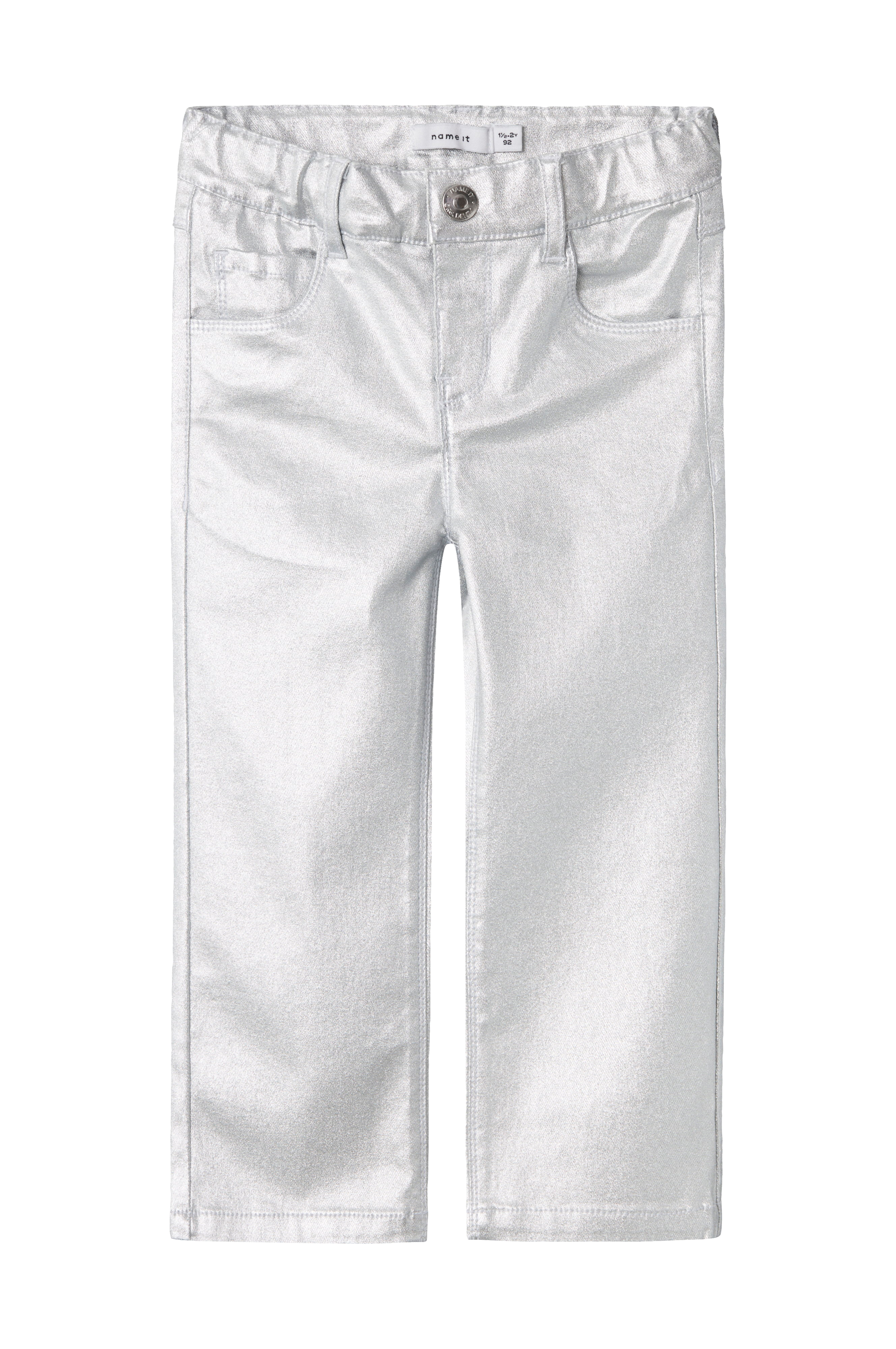 • Sølvfarvede bukser• Femlommemodel• Justérbar talje• Trykknap• Lige ben