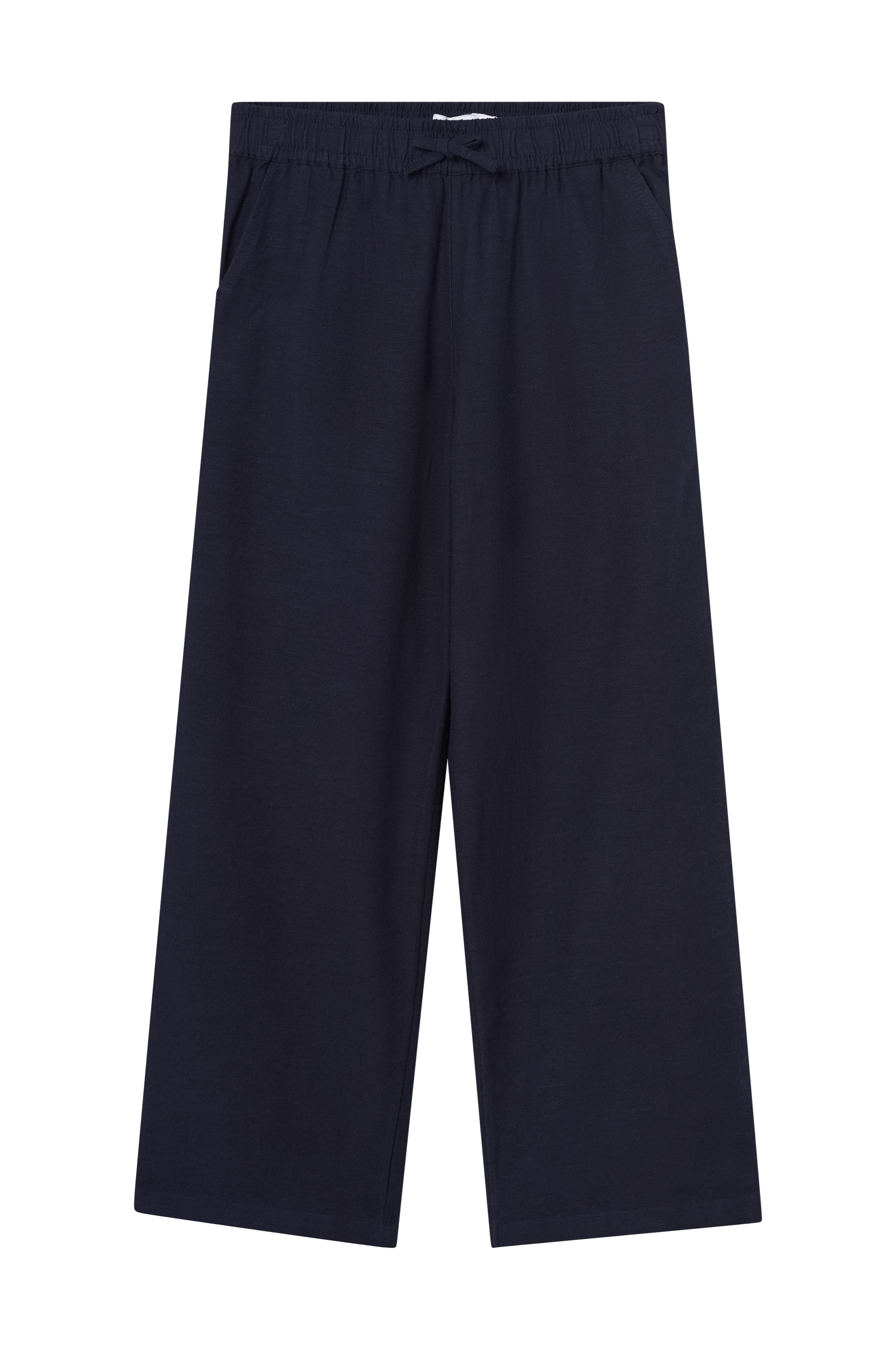 • Bukser i hørblanding• Justérbar, elastisk talje med bindebånd• Lommer i siderne• Snydelommer bagpå