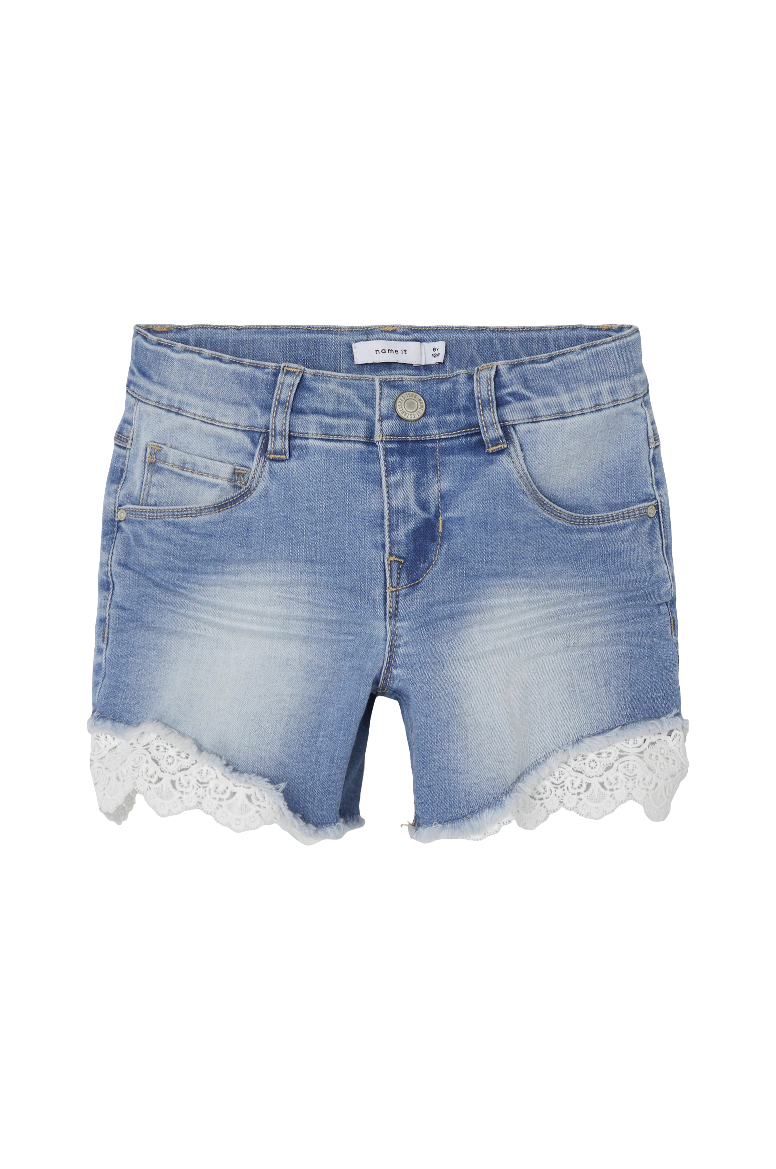 • Justérbar talje• Femlommemodel• Hægtelukning• Gylp med lynlås• Benafslutning med rå kanter• Påsyede blondekanter ved enden af benene