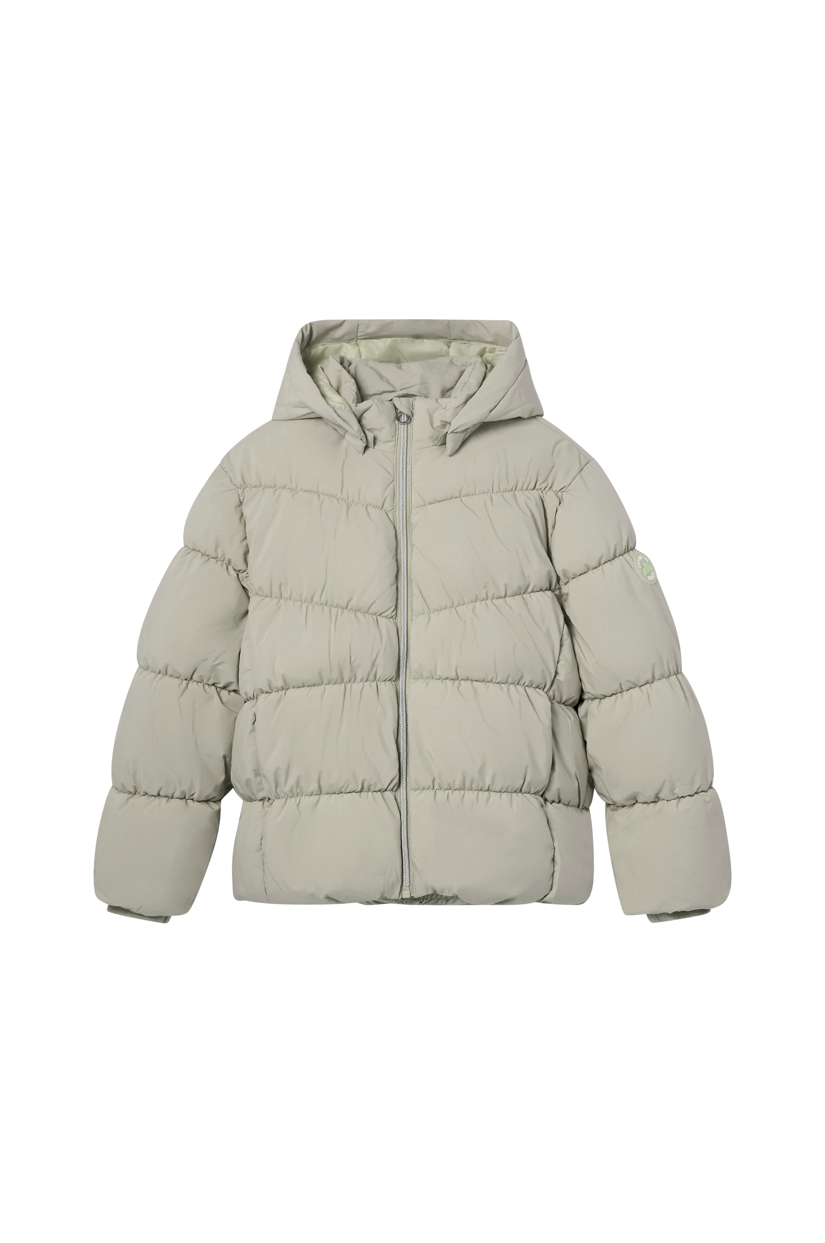 • Quiltet, foret pufferjakke• Aftagelig hætte• Lynlås• Sidelommer• Ribmanchetter ved manchetterne• Elastik ved nederste kant