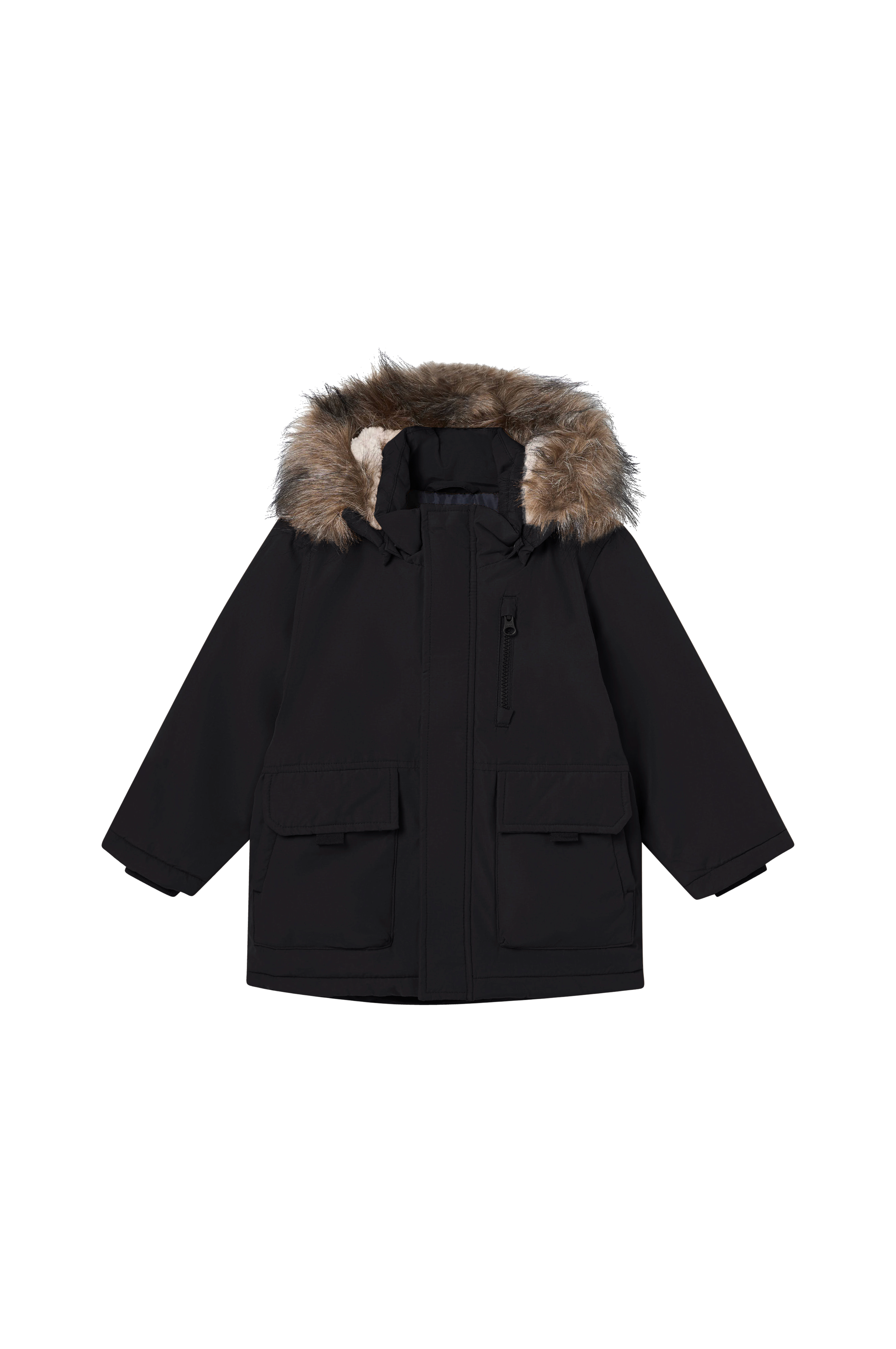 • Foret parkamodel• Aftagelig hætte med teddyforing• Aftagelig kunstpelskant på hætten• Lynlås• Vindflap over lynlåsen med trykknapper• Ribmanchetter ved manchetterne• Sidelommer