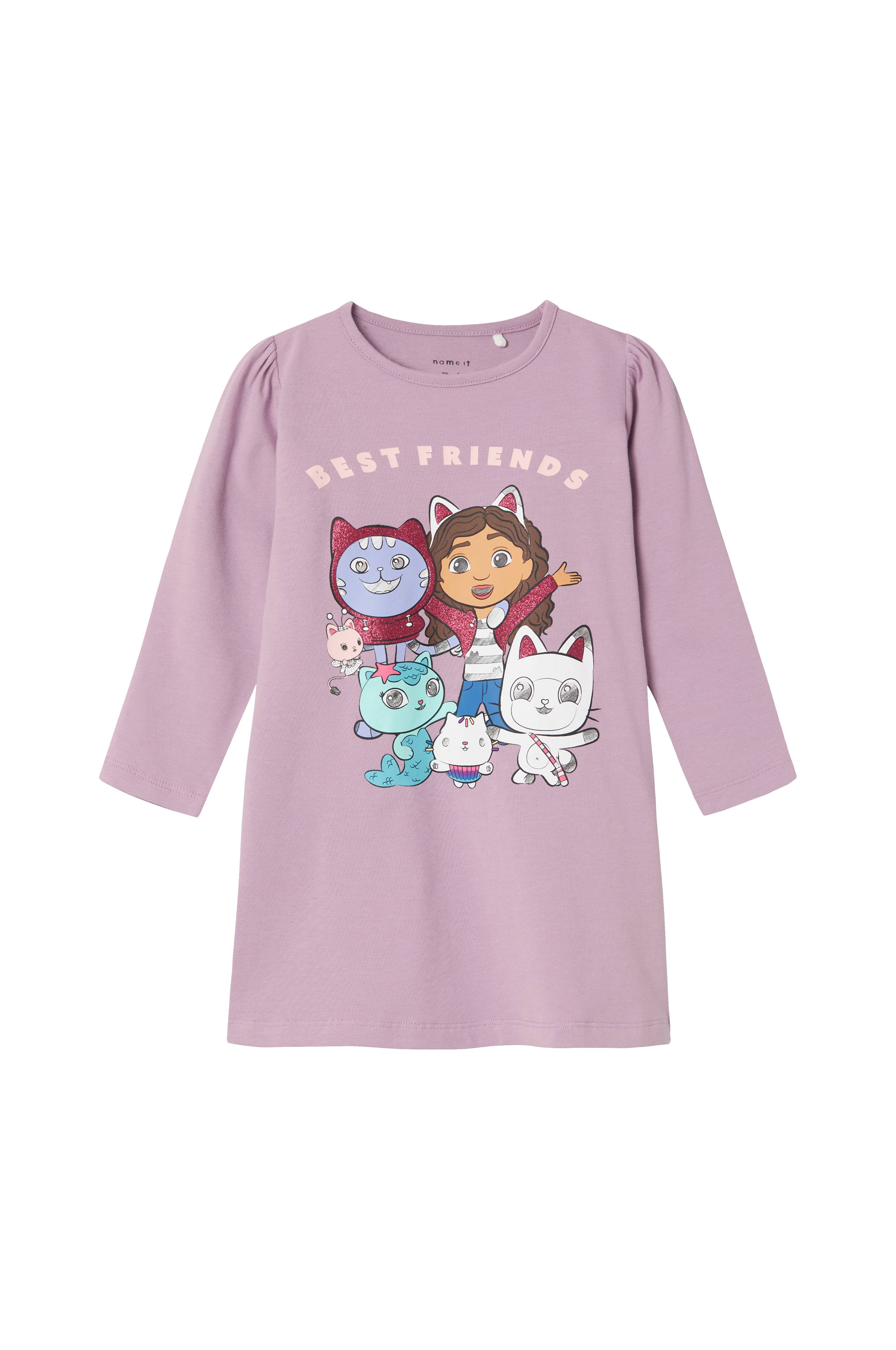 • Langærmet natkjole i blød, elastisk bomuld• Rund hals• Glitrende tryk foran