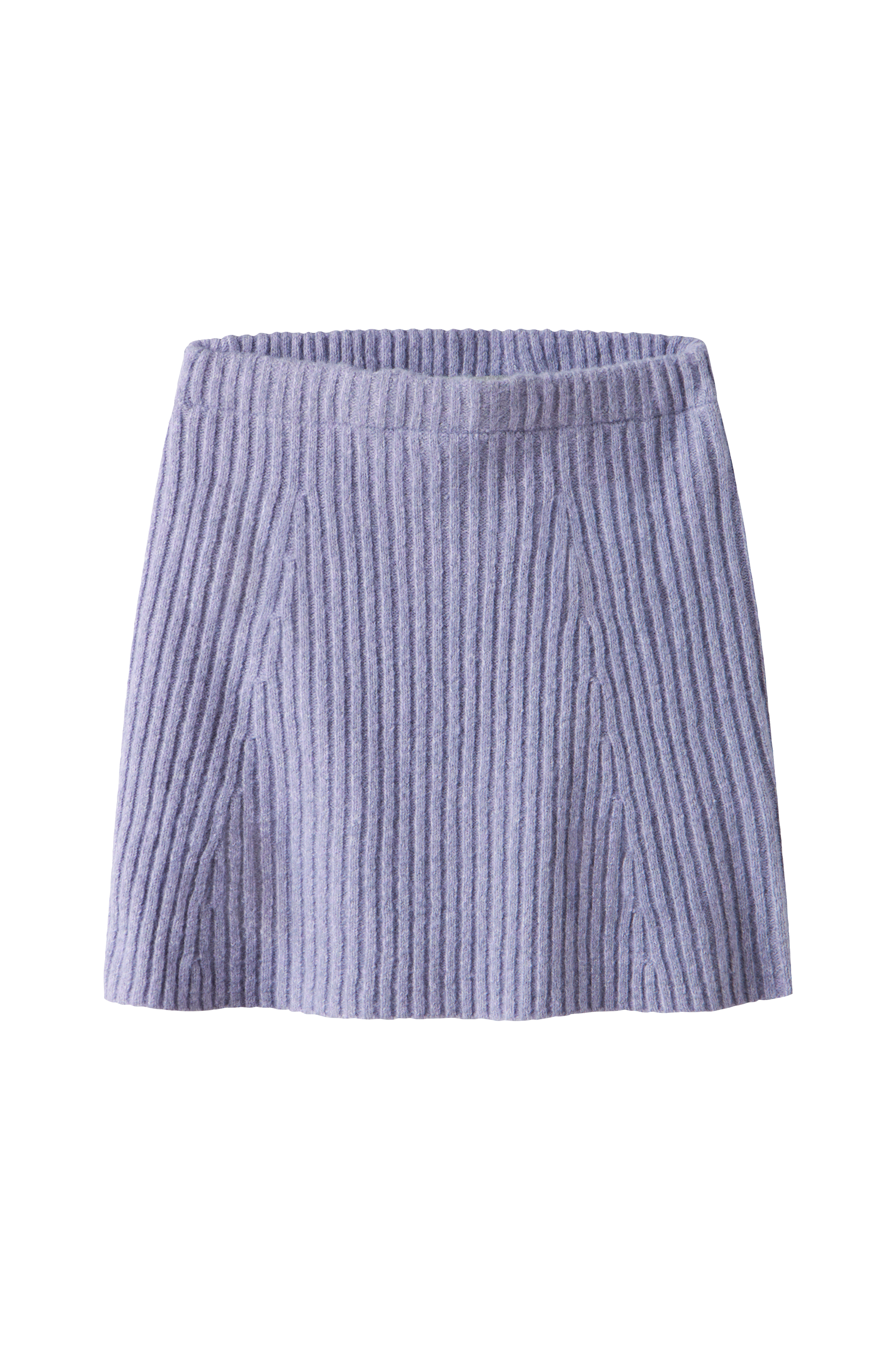• Ribstrikket, a-linjeformet nederdel• Elastik ved taljen