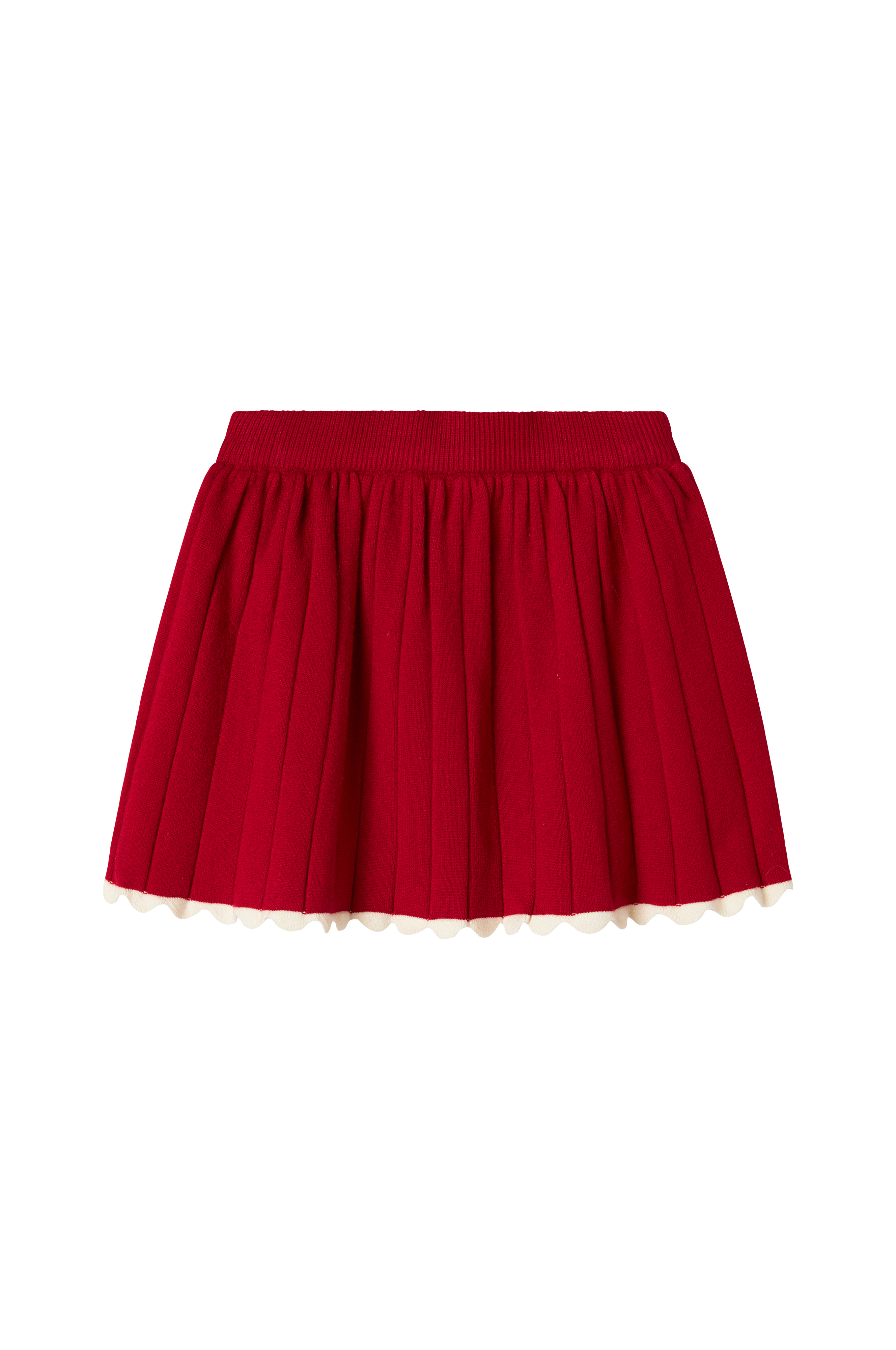 • Fintstrikket nederdel med nedre del med svaj• Ribbet talje med indvendig elastik• Bølget, kontrastfarvet søm