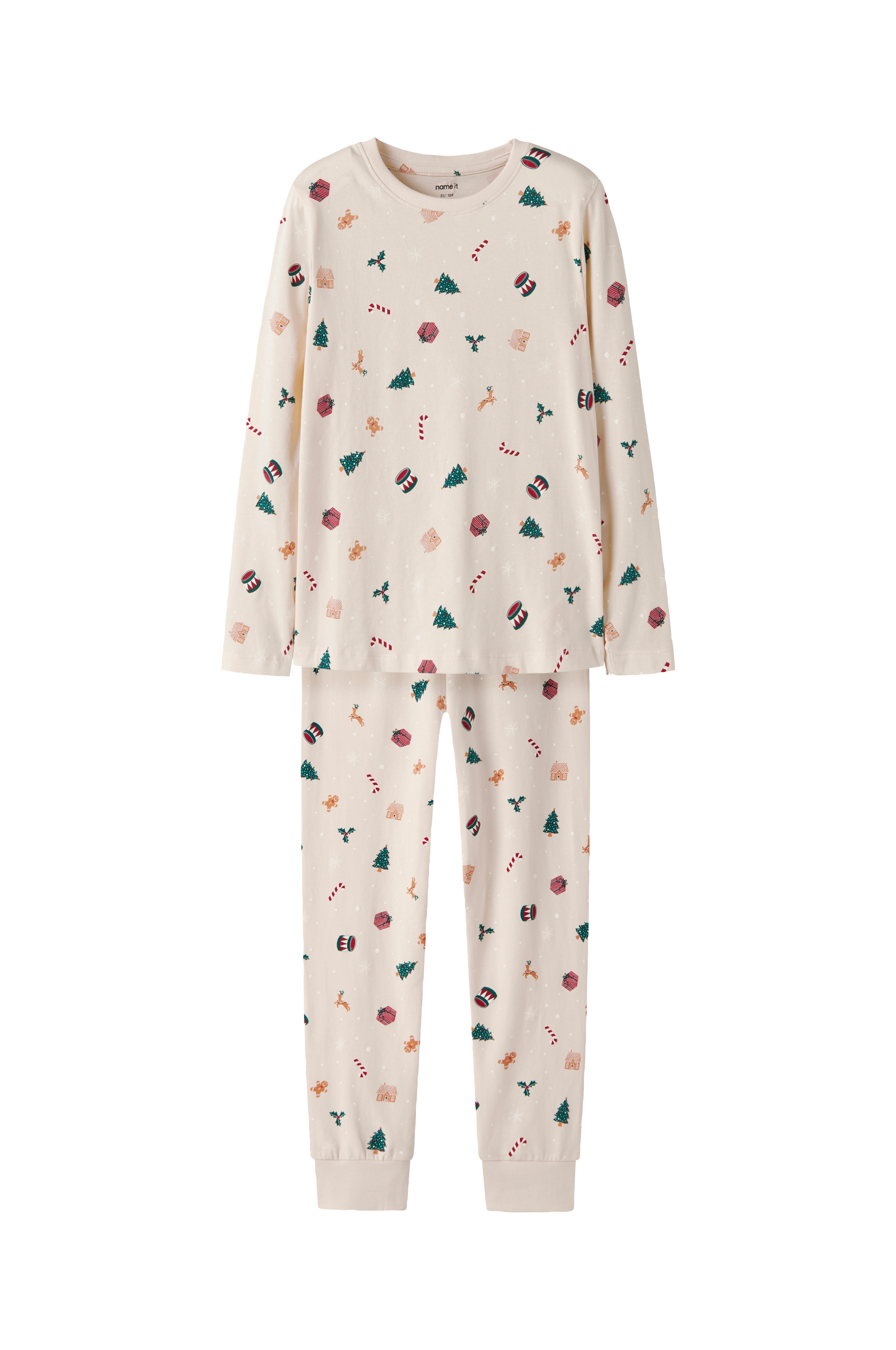 • Pyjamas i bomuld med julemotiv• Langærmet t-shirt med rund, ribbet halsudskæring• Bukser med elastik ved taljen og ribmanchetter ved enden af benene