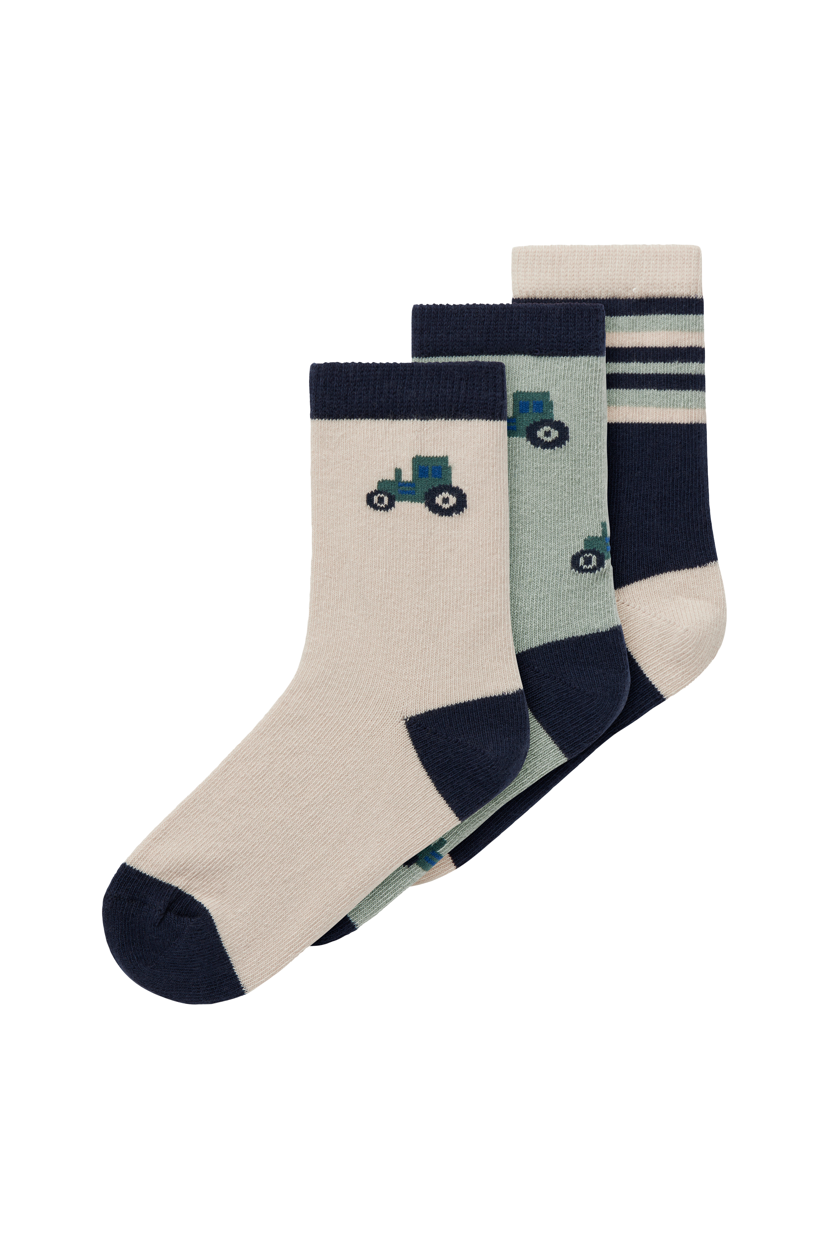 • 3-pakke, elastiske strømper i bomuld med anderledes farver og mønster• Ribkanter på toppen