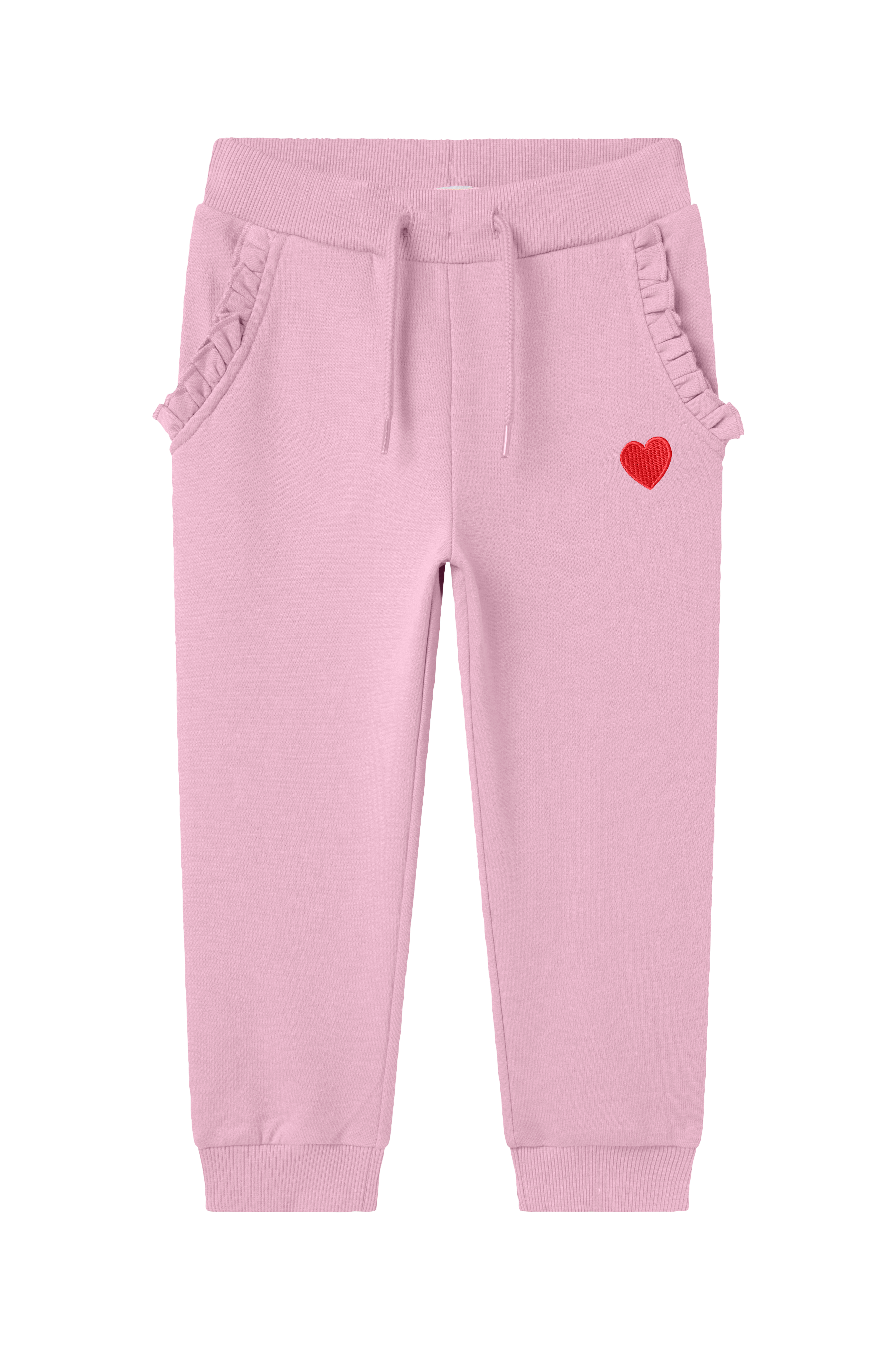 • Sweatpants med blød, børstet inderside• Ribbet, elastisk, justérbar talje• Sidelommer med flæsekant• Broderet hjerte på det ene ben• Ribmanchetter ved enden af benene