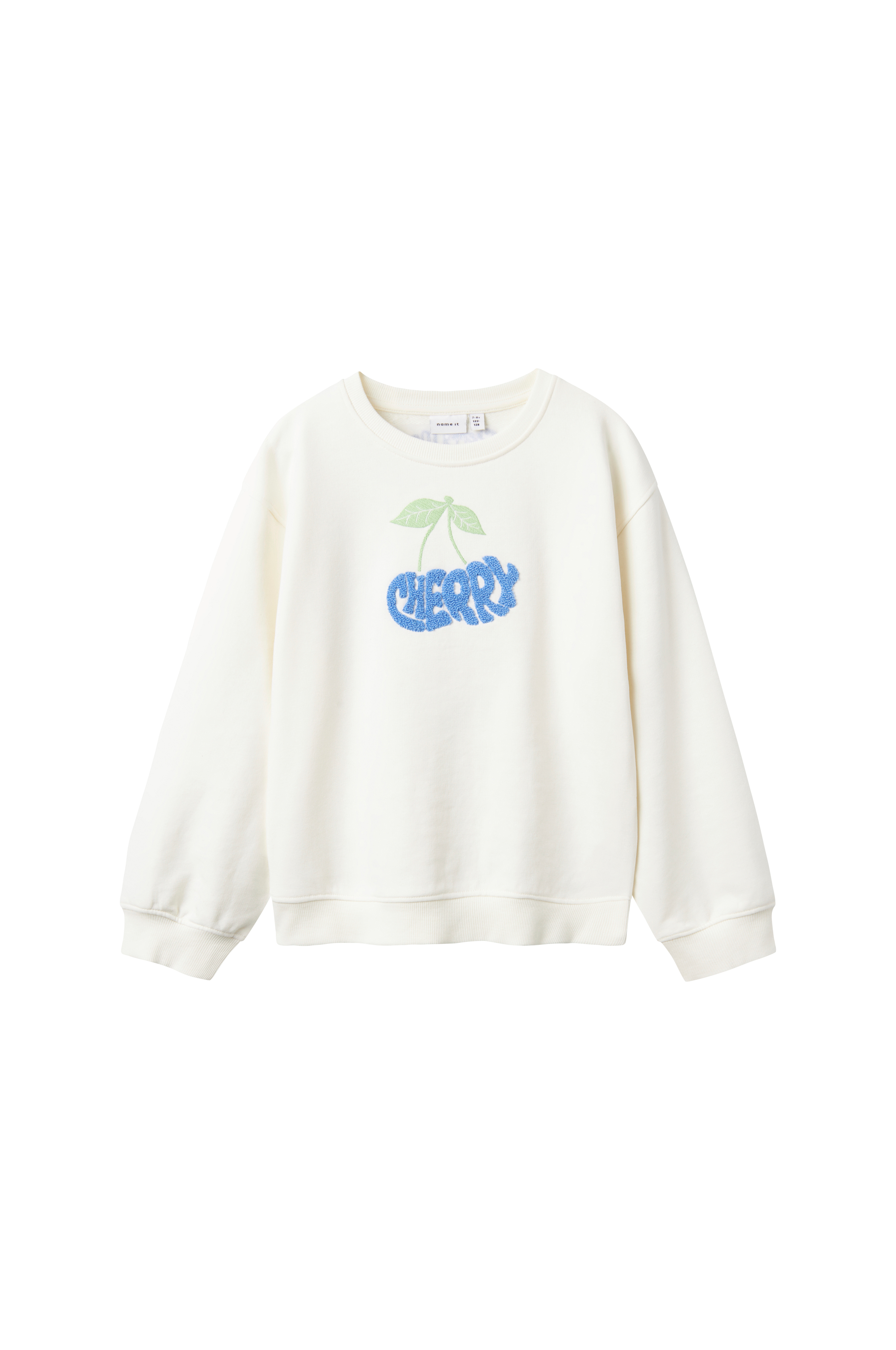 • Rund halsudskæring• Applikation foran med broderi og påsyet tekst• Ribmanchetter ved manchetterne og nederst