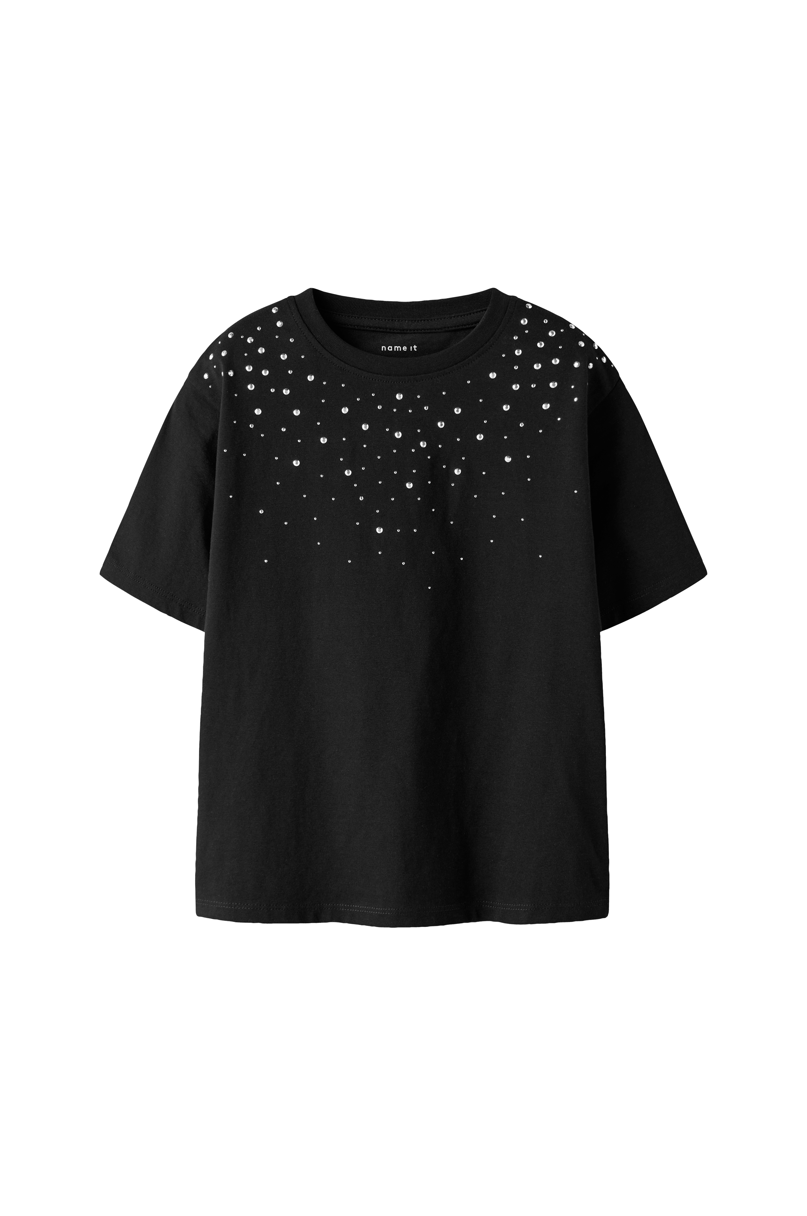 • T-shirt i bomuld• Rund, ribbet halsudskæring• Dekorativ rhinsten oppe foran