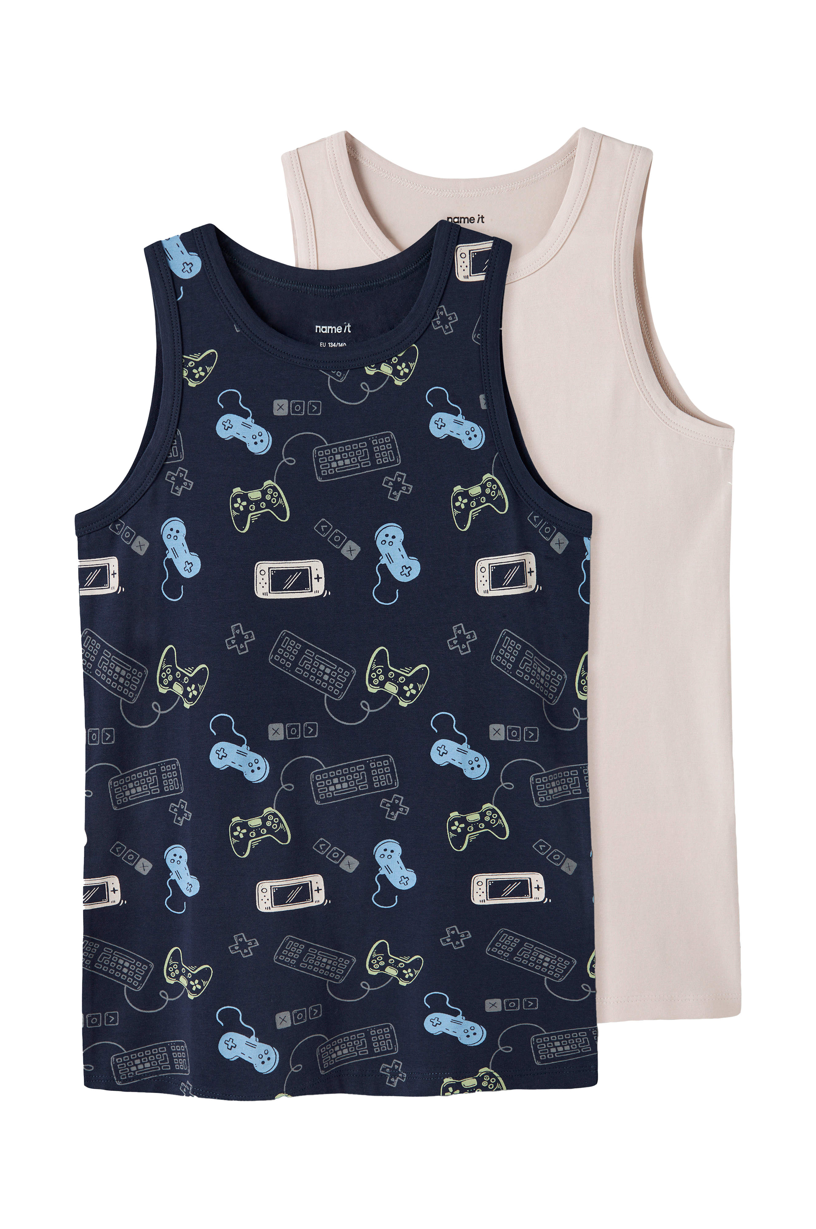 • 2-pak med bløde, elastiske tanktoppe i bomuld• Rund halsudskæring• En ensfarvet model• En mønstret model