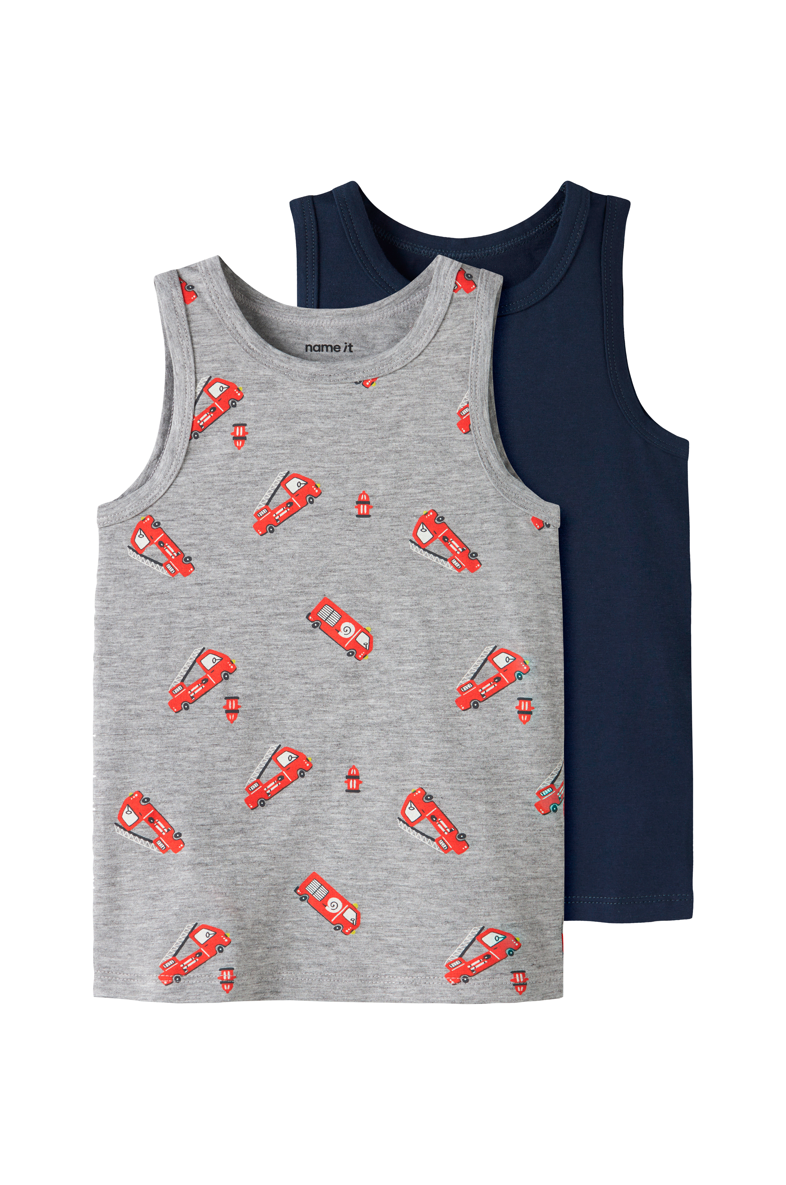 • 2-pak med bløde, elastiske tanktoppe i bomuld• Rund halsudskæring• En ensfarvet model• En mønstret model