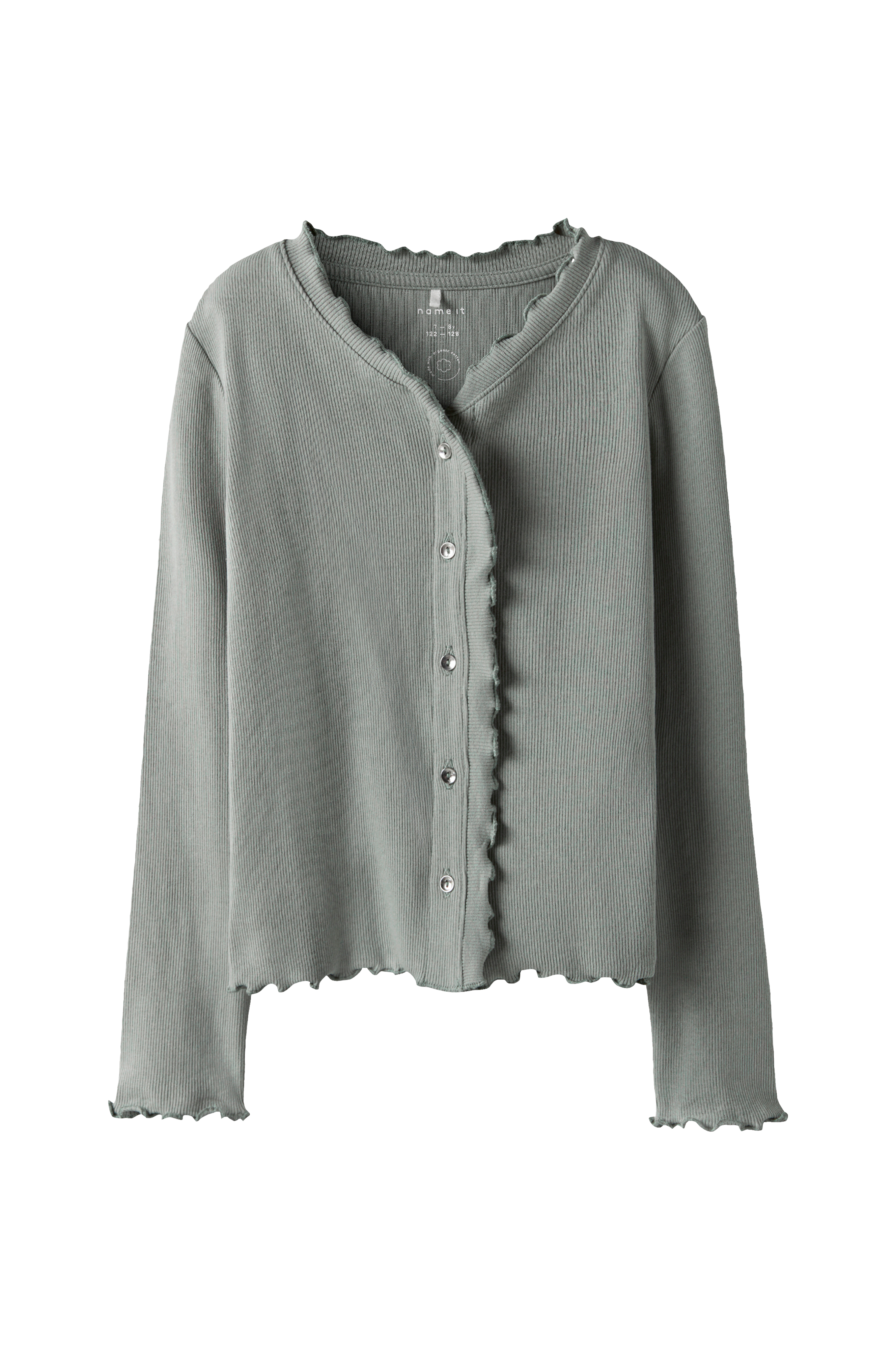 • Langærmet, ribbet top med knapper foran