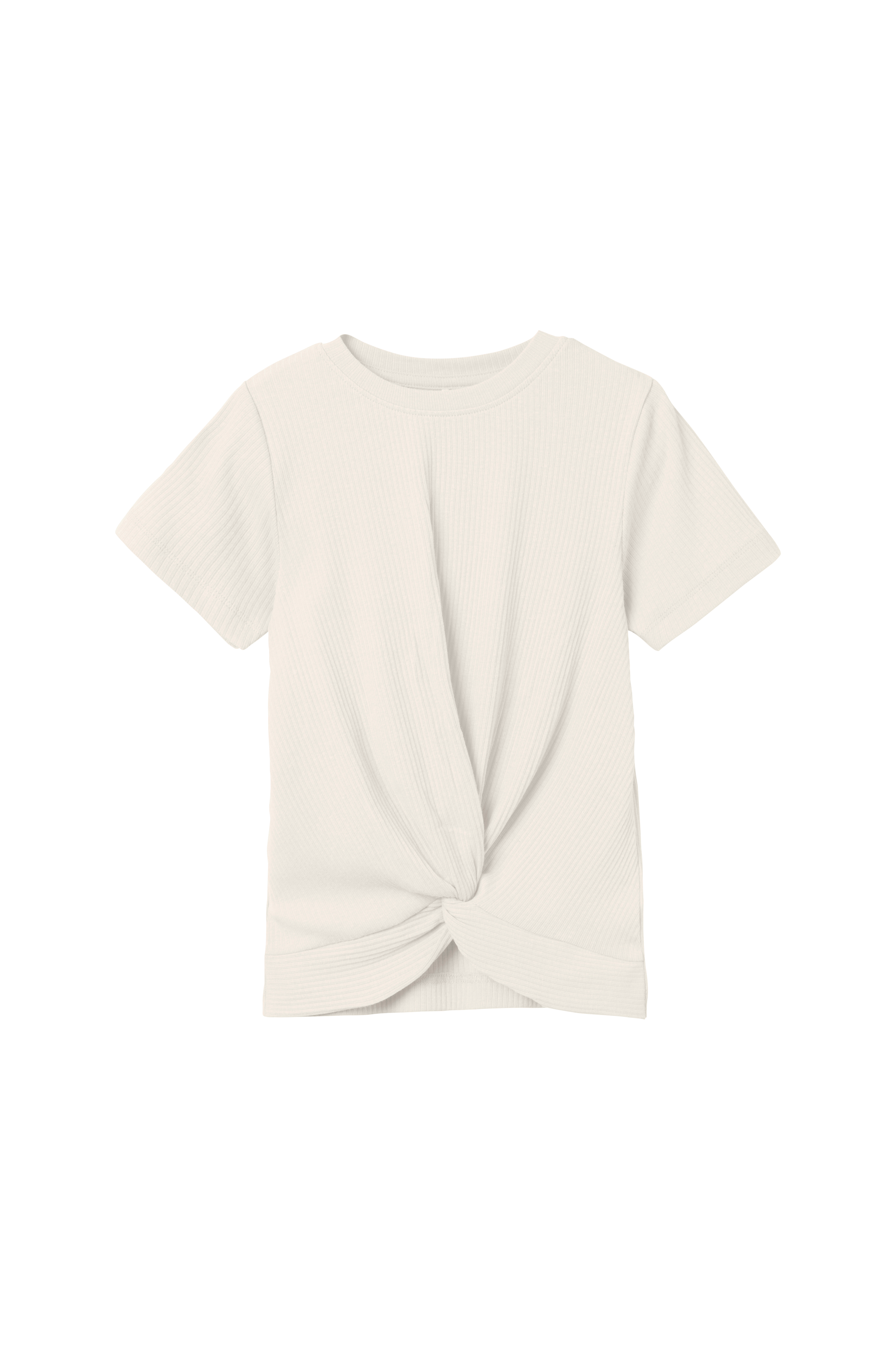 • Fremstillet af blød, ribbet strækjersey• Rund halsudskæring• Kort ærme• Drapering med knudedetalje nede foran