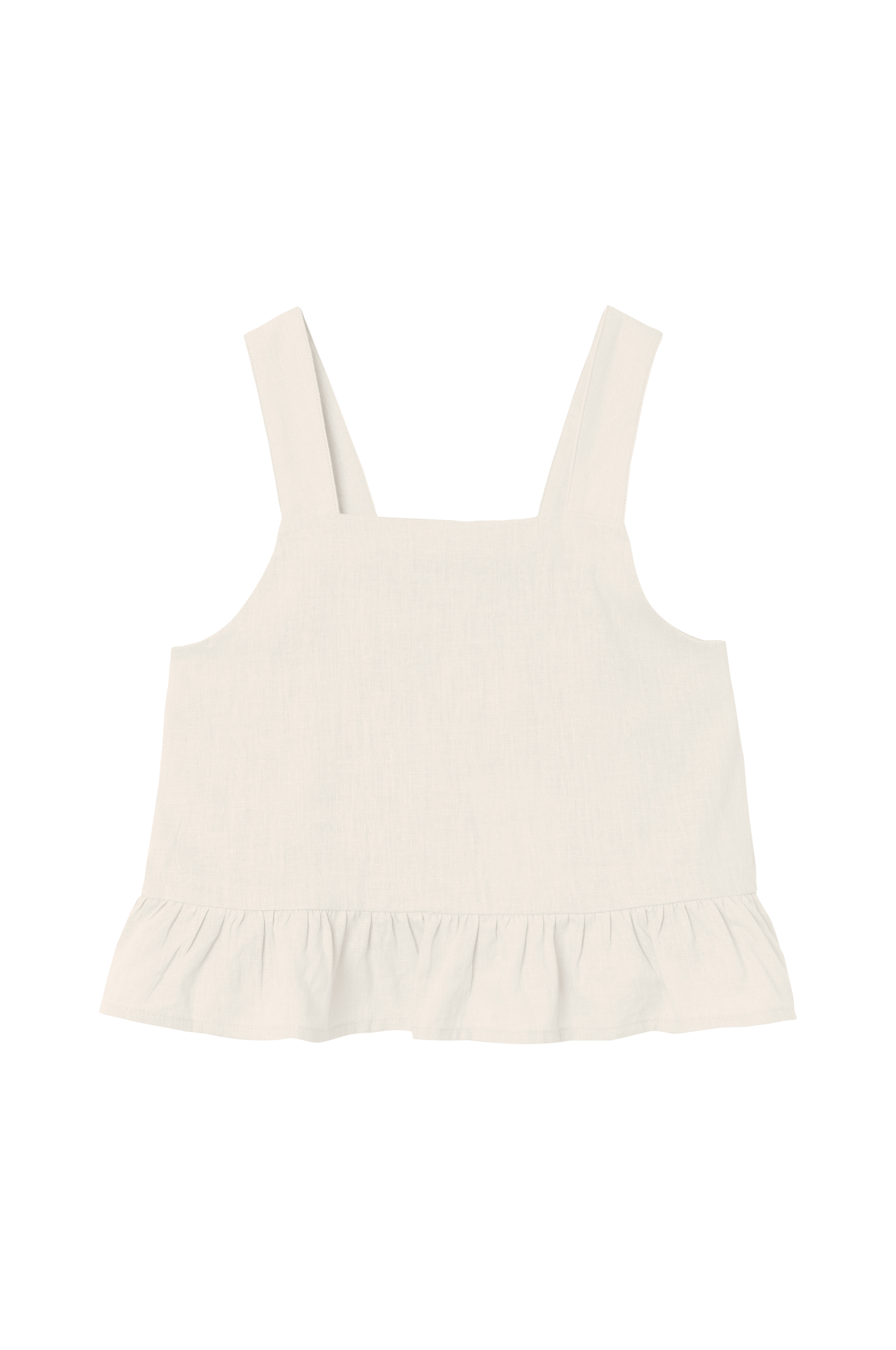 • Top i hørblanding• Brede skulderstropper• Volant nederst