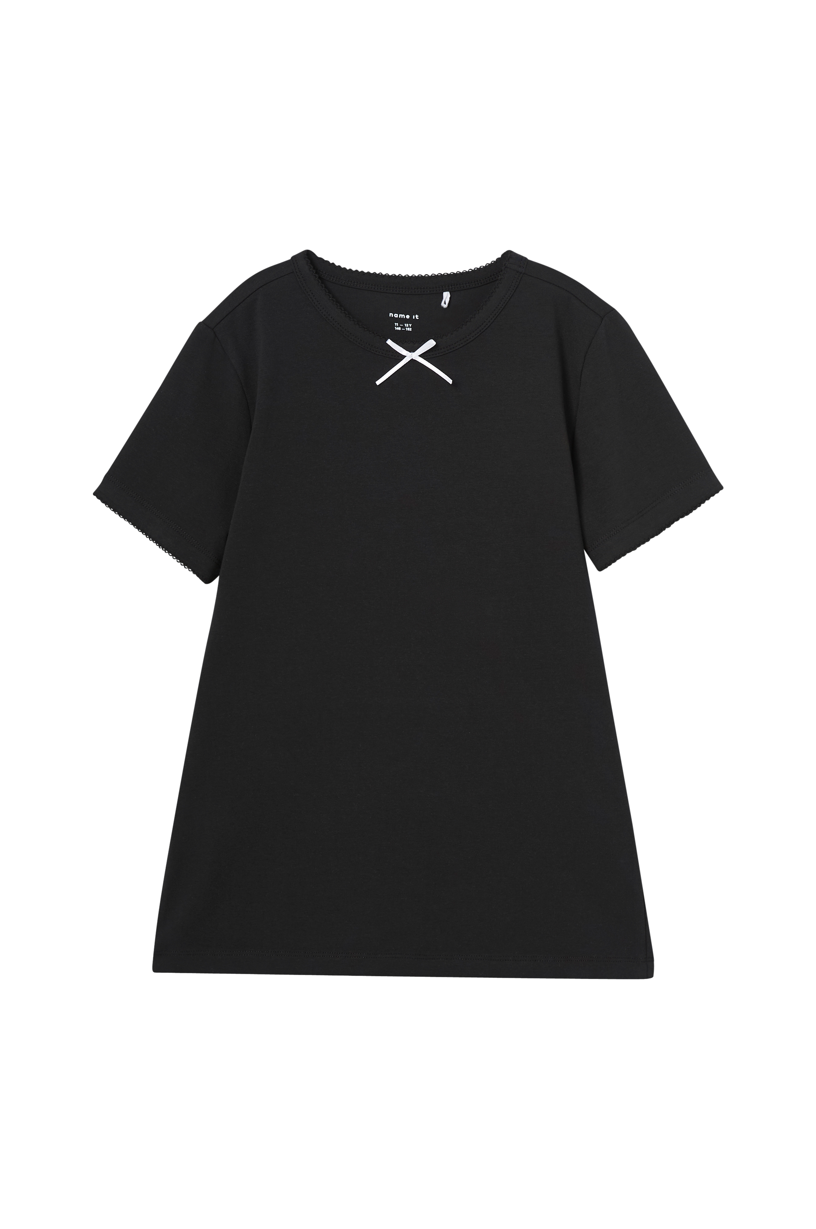 • Kortærmet top i bomuldsjersey• Lille sløjfe i halsen• Dekorativ kant i halsen og ved manchetterne