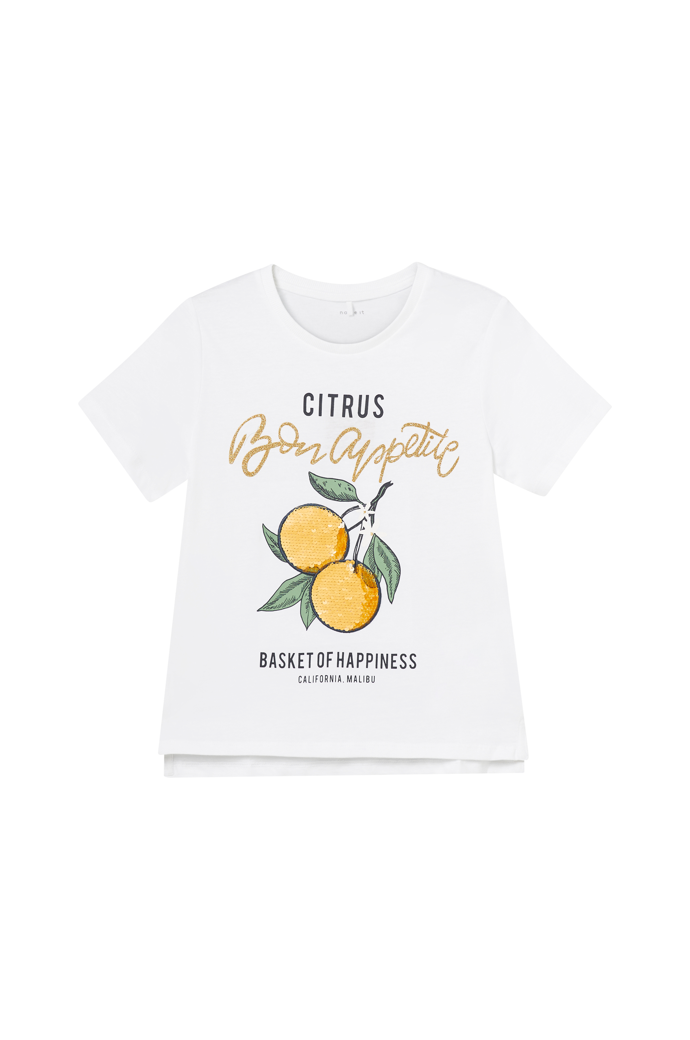 • Fremstillet af blød, elastisk bomuld• Rund halsudskæring• Glitrende tryk foran med pailletter