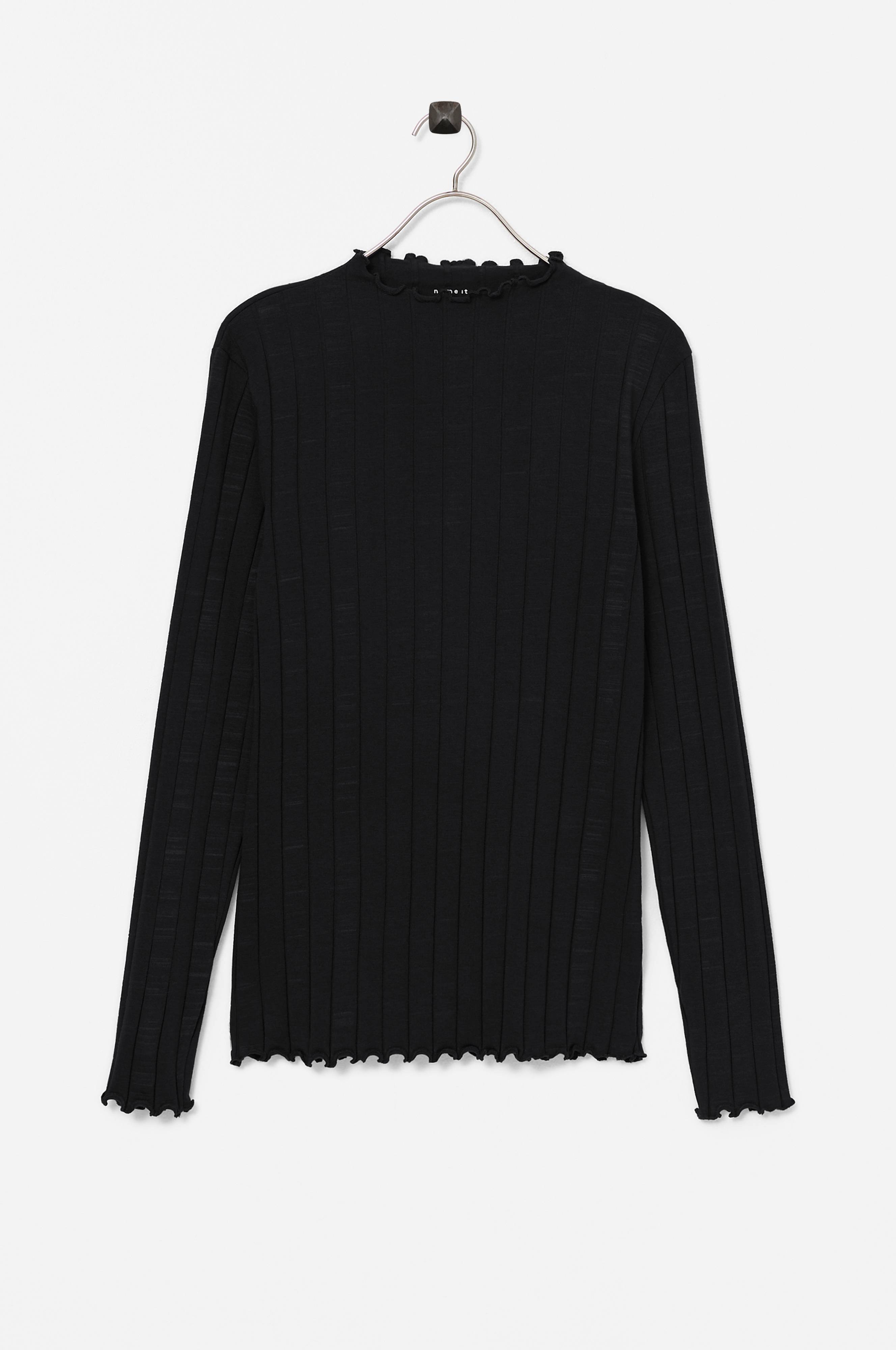 • Blød, elastisk jersey med ribbet mønster • Rund hals • Smal pasform • Produktet indeholder økologisk bomuld, som er dyrket uden kemiske sprøjtemidler, kunstgødning og genmodificerede afgrøder (GMO). Dette betyder et sundere arbejdsmiljø for landmænd og bedre jord.