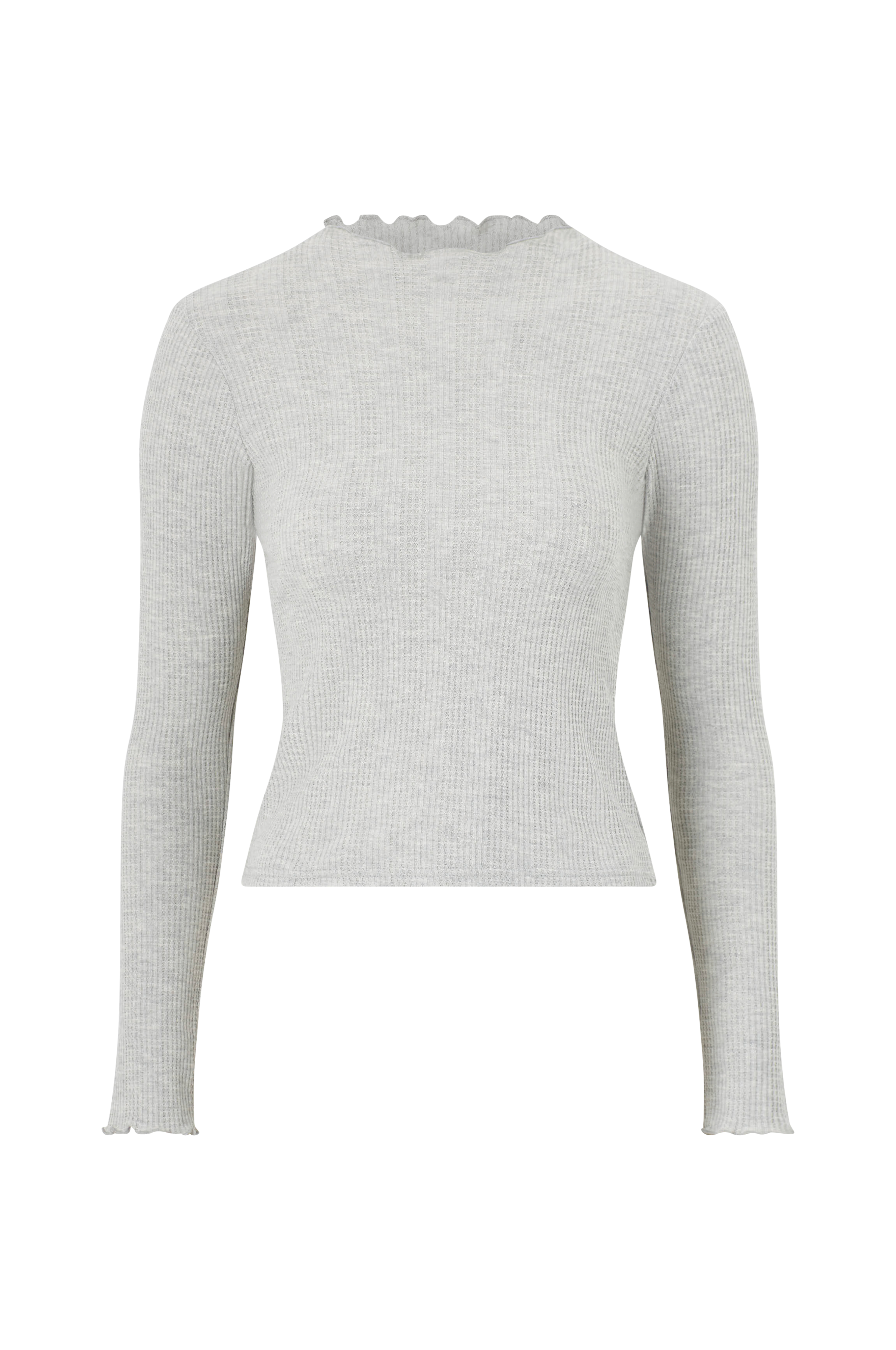 • Mønstervævet model• Halvhøj krave med bølget kant• Langt ærme