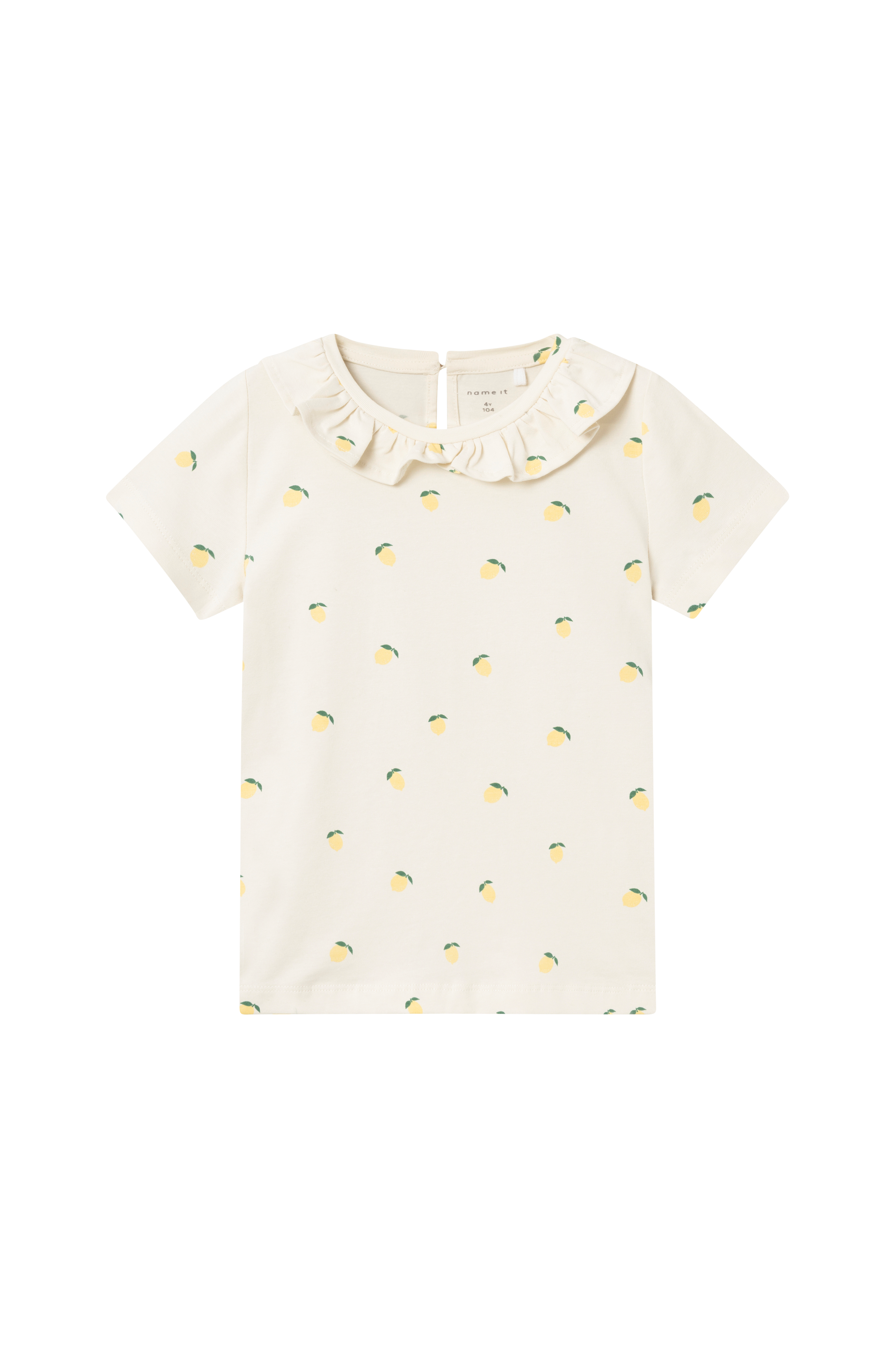 • Top i blød, elastisk bomuld• Printet mønster• Rund halsudskæring med volant hele vejen rundt• Ventilation med knap i nakken