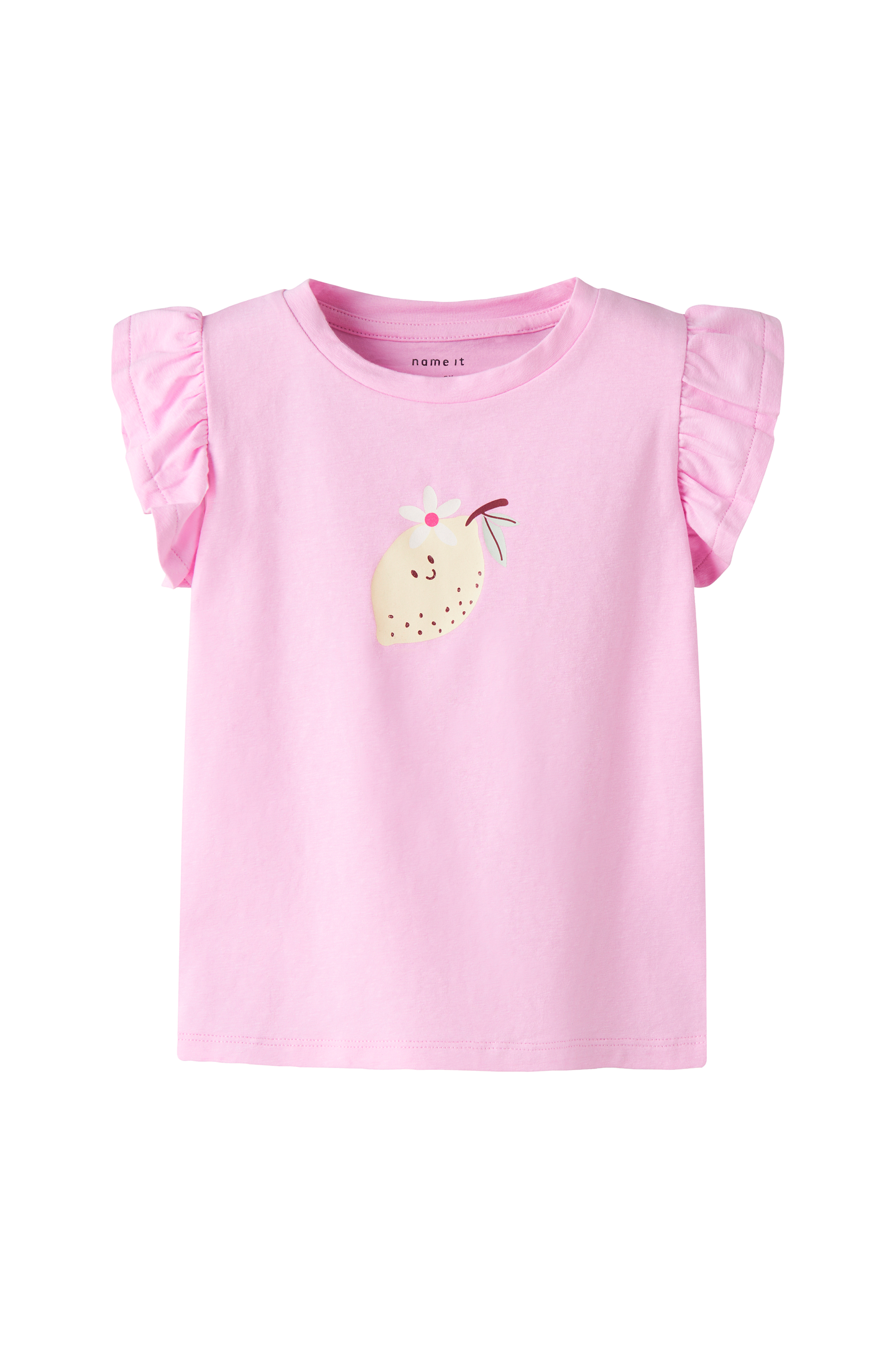 • Korte flagrende ærmer• Tryk foran• Fremstillet af bomuldsjersey