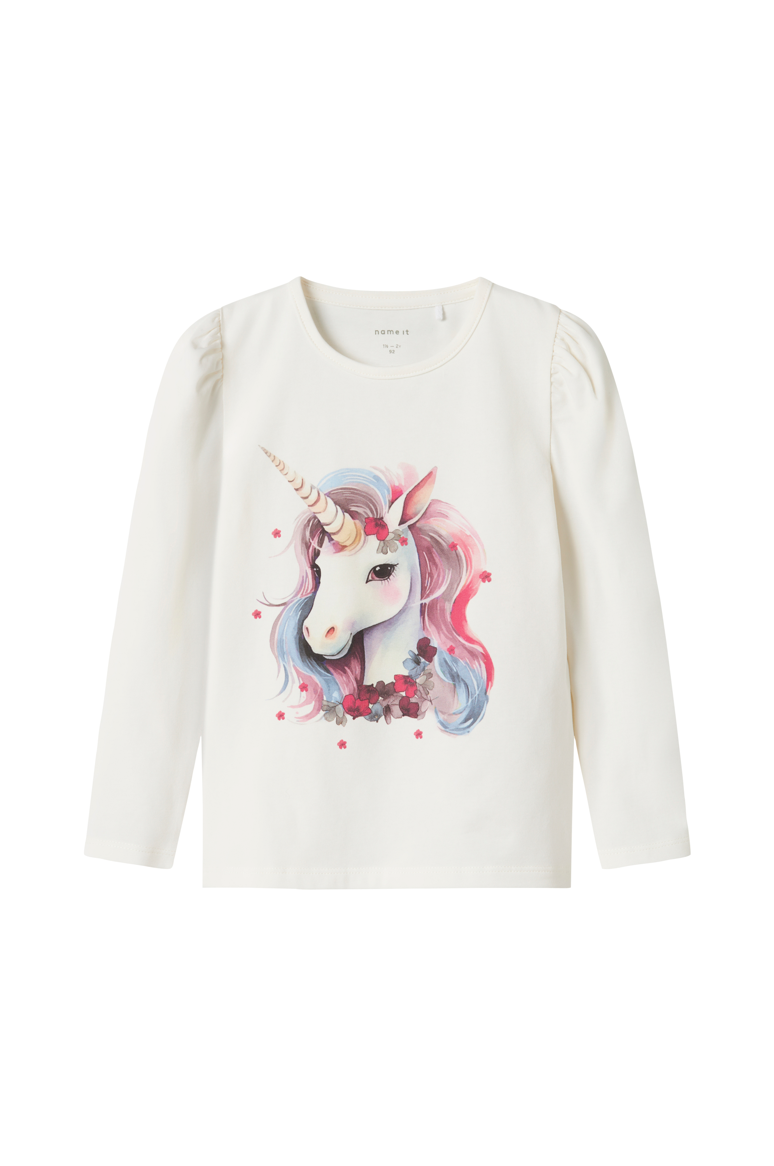 • Blød top i bomuld• Tryk på forsiden• Rund halsudskæring• Lange pufærmer• Normal pasform