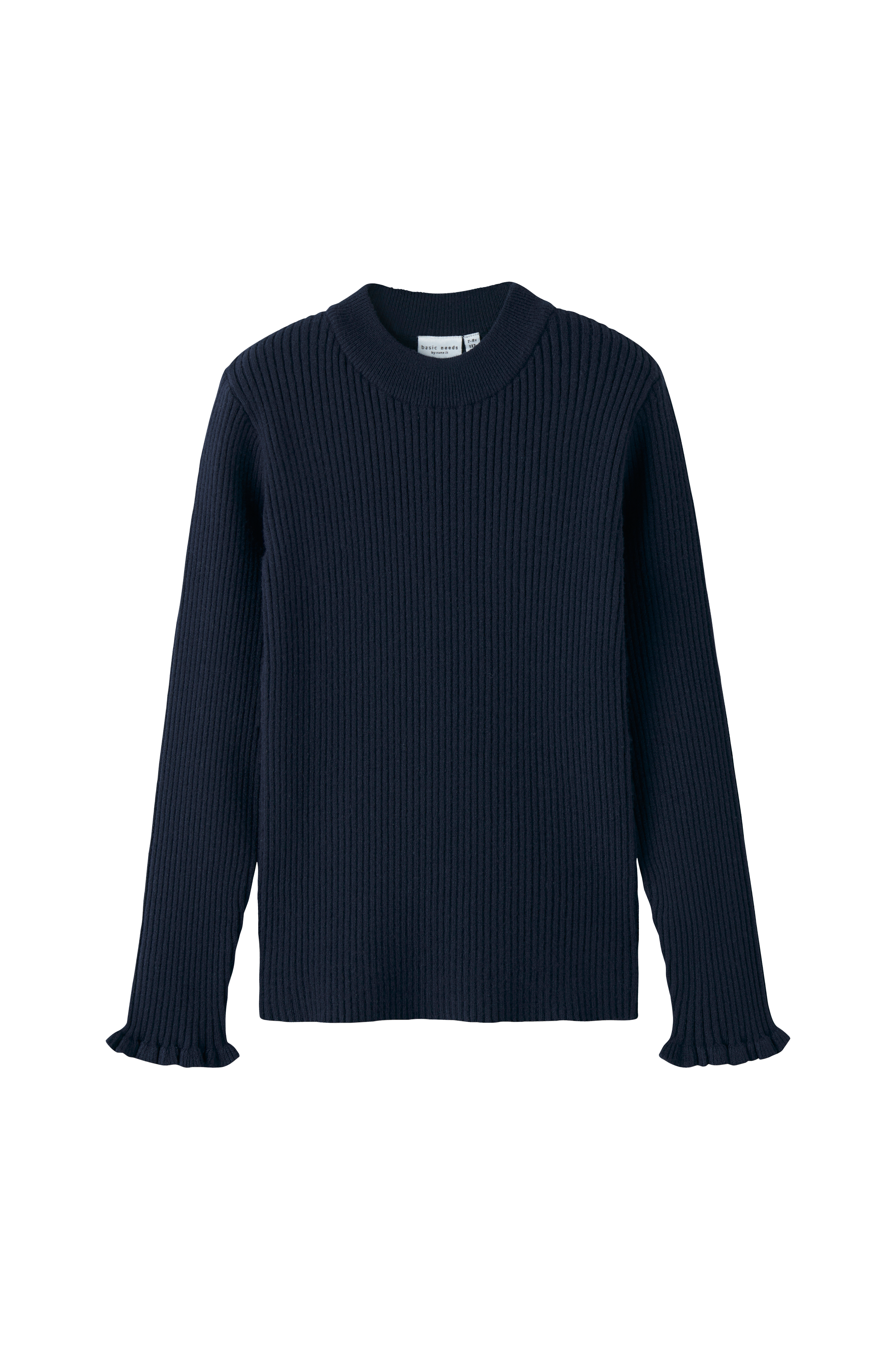 • Ribbet, elastisk trøje• Rund, høj halsudskæring• Små flæsekanter ved ærmeafslutningerne• Figursyet pasform