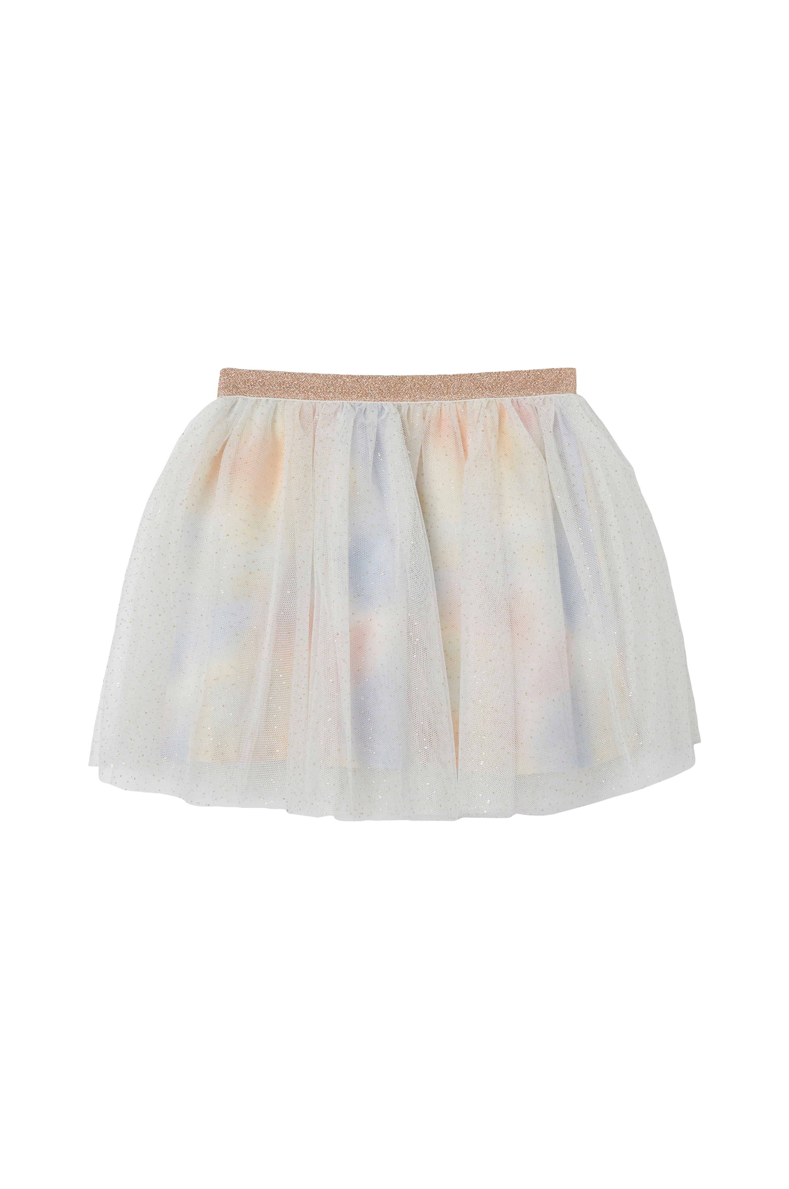 • Nederdel i guldglitrende tyl• Guldglitrende elastisk bånd ved taljen• For i jersey