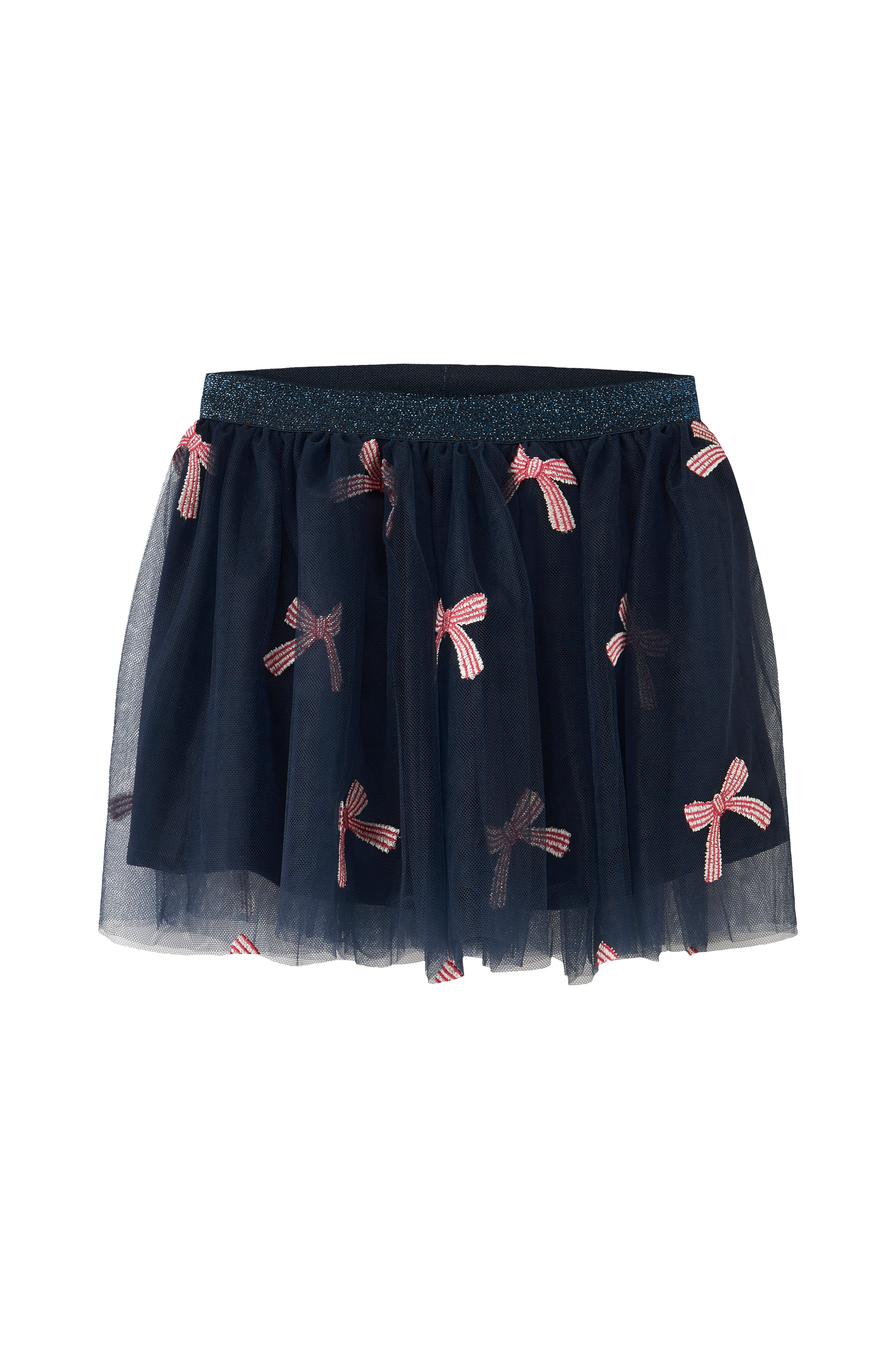 • Foret nederdel i tyl med broderede detaljer• Vævet for• Glitrende, elastisk talje