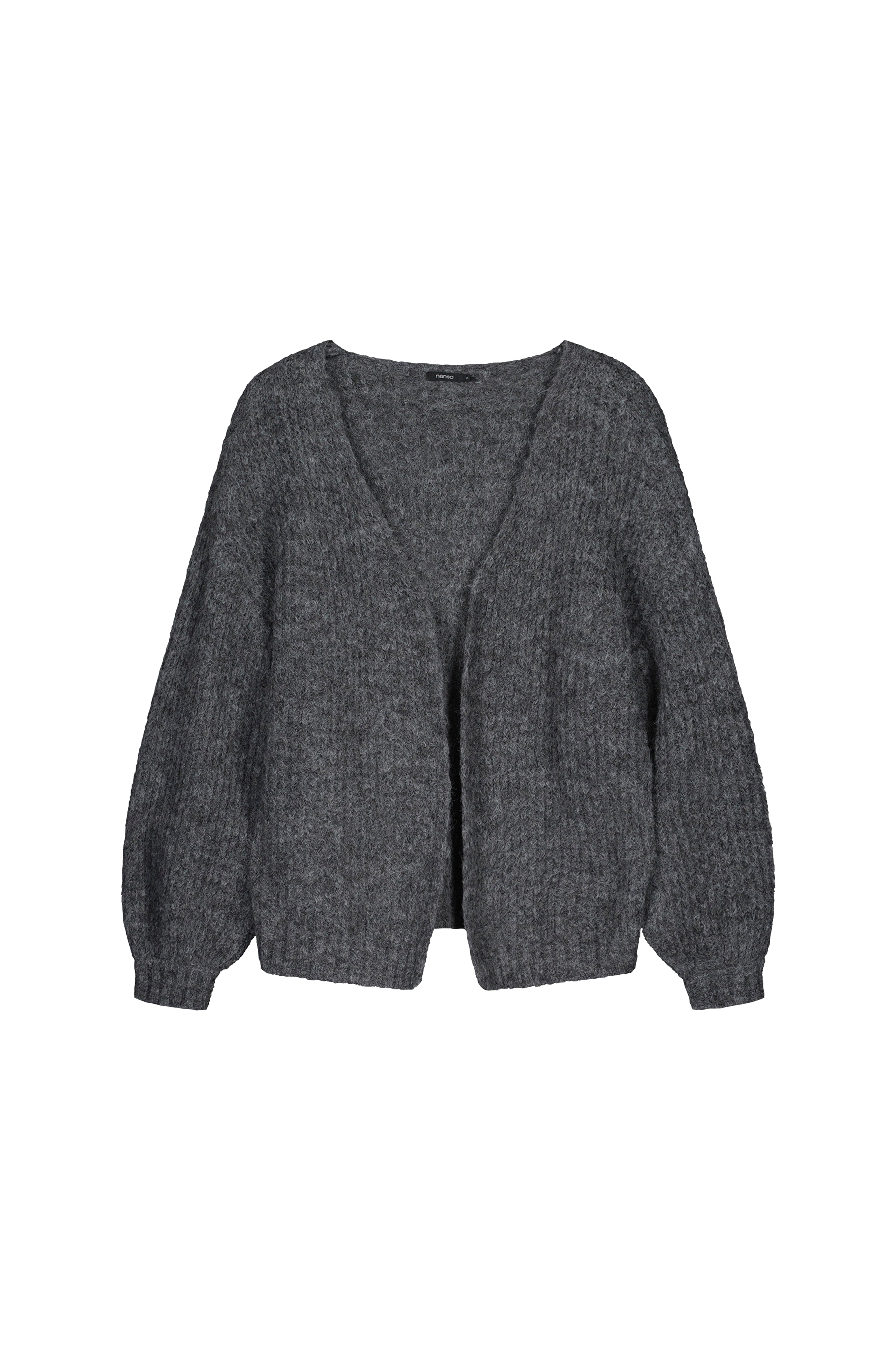 • Fintstrikket, åben cardigan i uldmiks• Lange ærmer med nedsænkede skuldre og ribstrik ved manchetterne