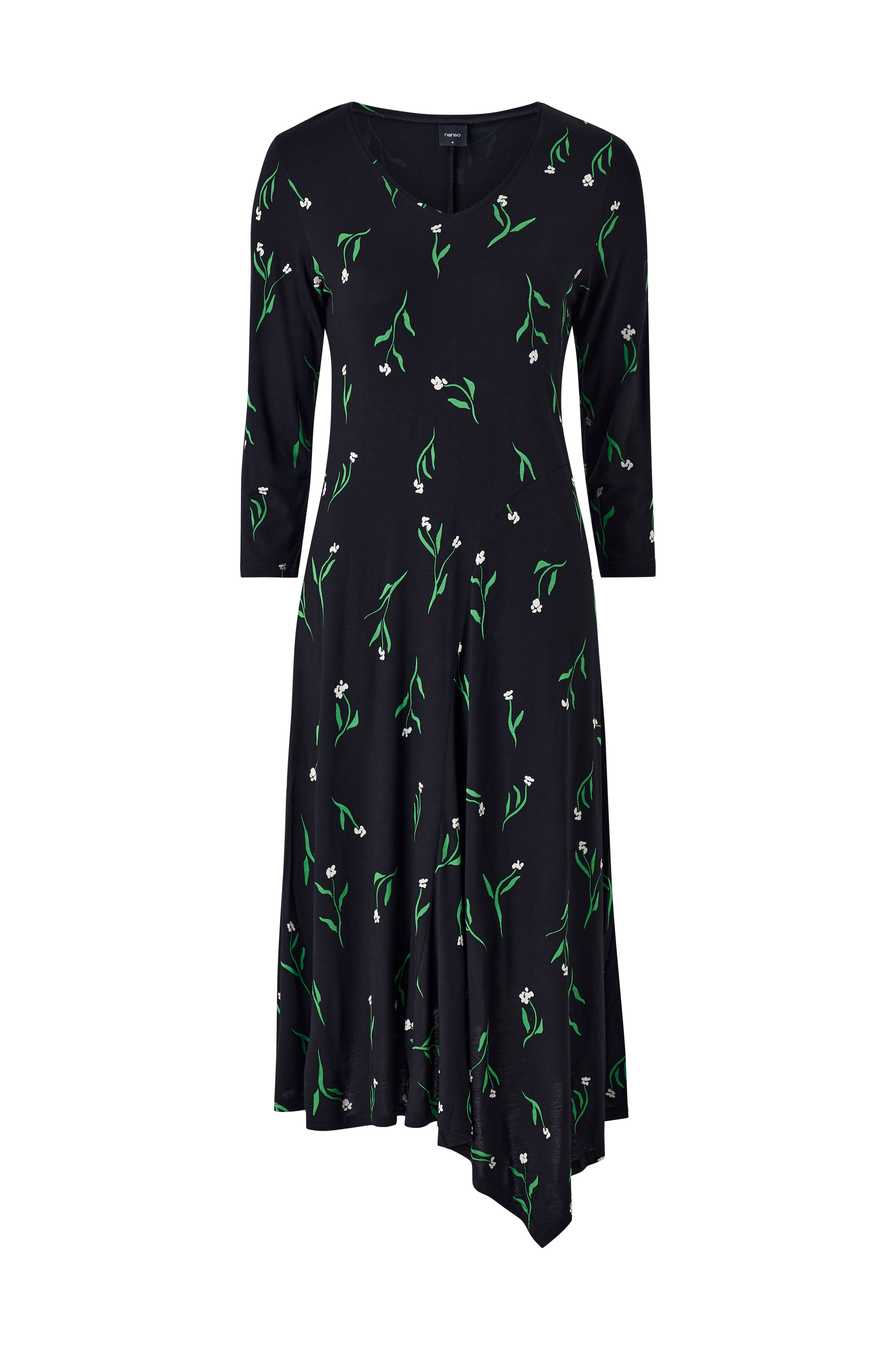 • Kjole i viskosejersey• V-udskæring• Lange ærmer• Asymmetrisk søm• Længde: 126 cm i størrelse S