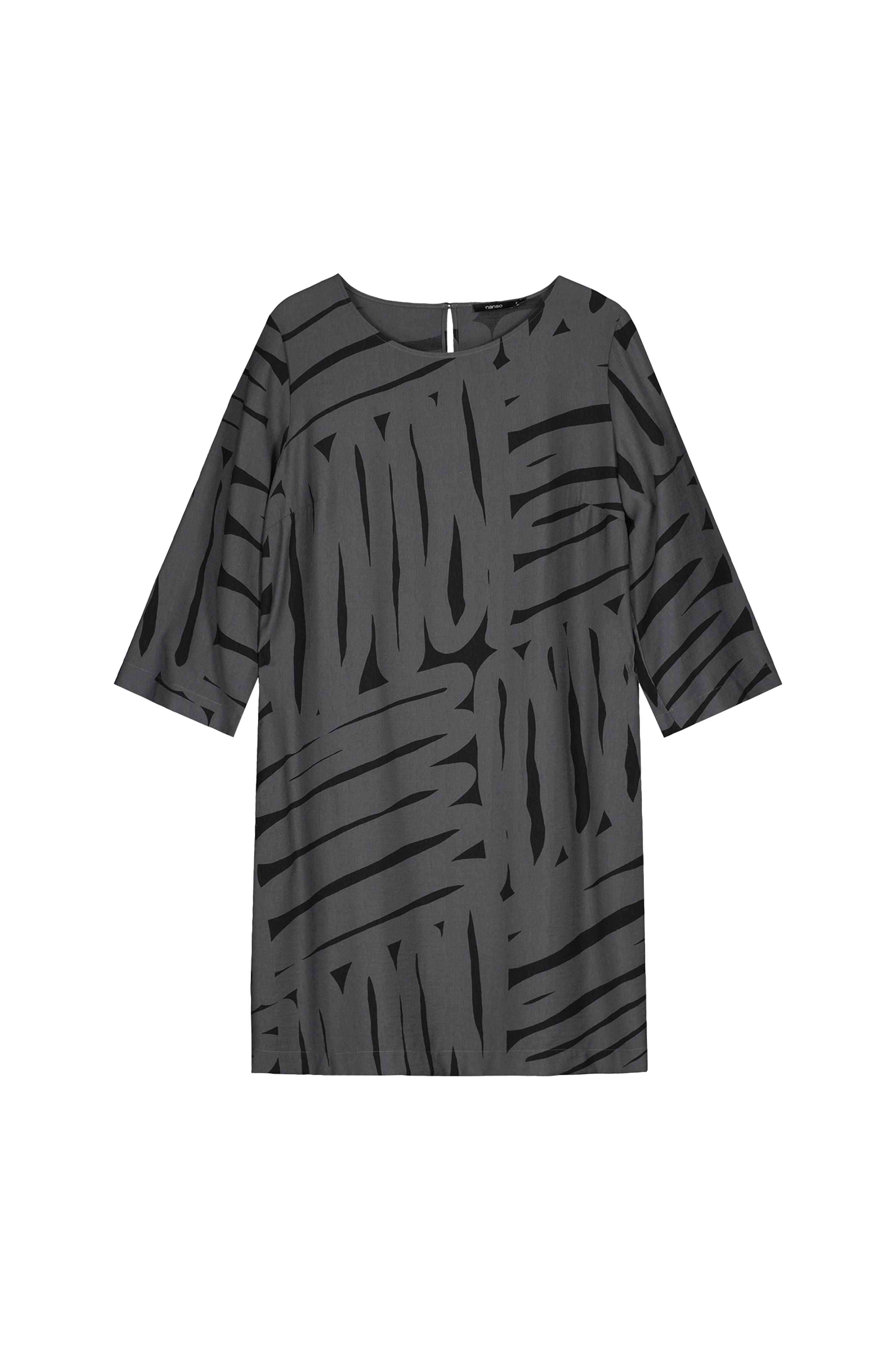 • Mønstret kjole med 3/4 lange ærmer• Lige model• Rund halsudskæring med nøglehulsåbning og knap i nakken• Sidelommer• Længde: 100 cm i størrelse 38
