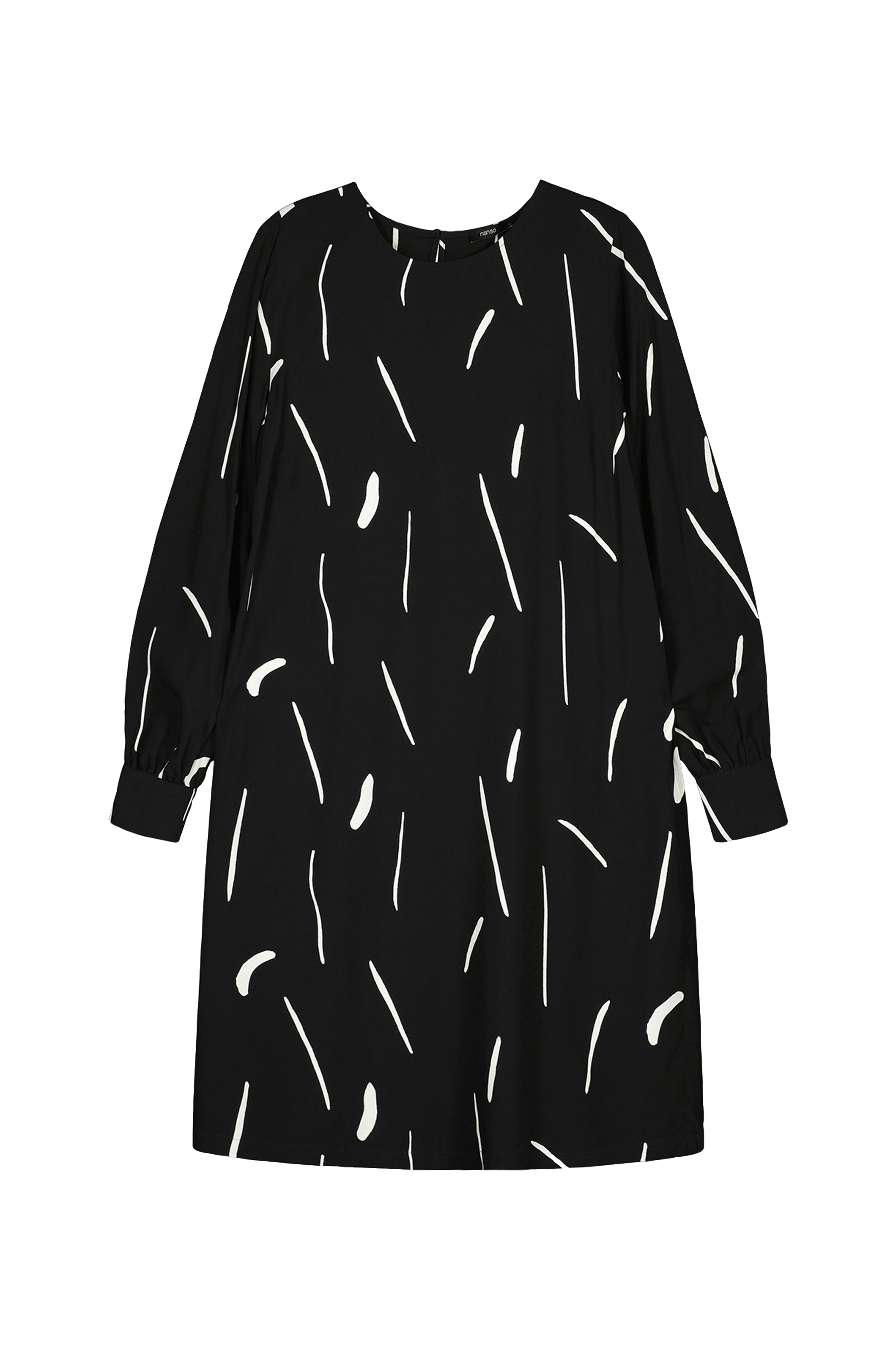 • Mønstret kjole i viskose• Rund halsudskæring med nøglehulsåbning og knap i nakken• Lange ærmer med manchetter ved manchetterne• Sidelommer• Længde: 100 cm i størrelse 38