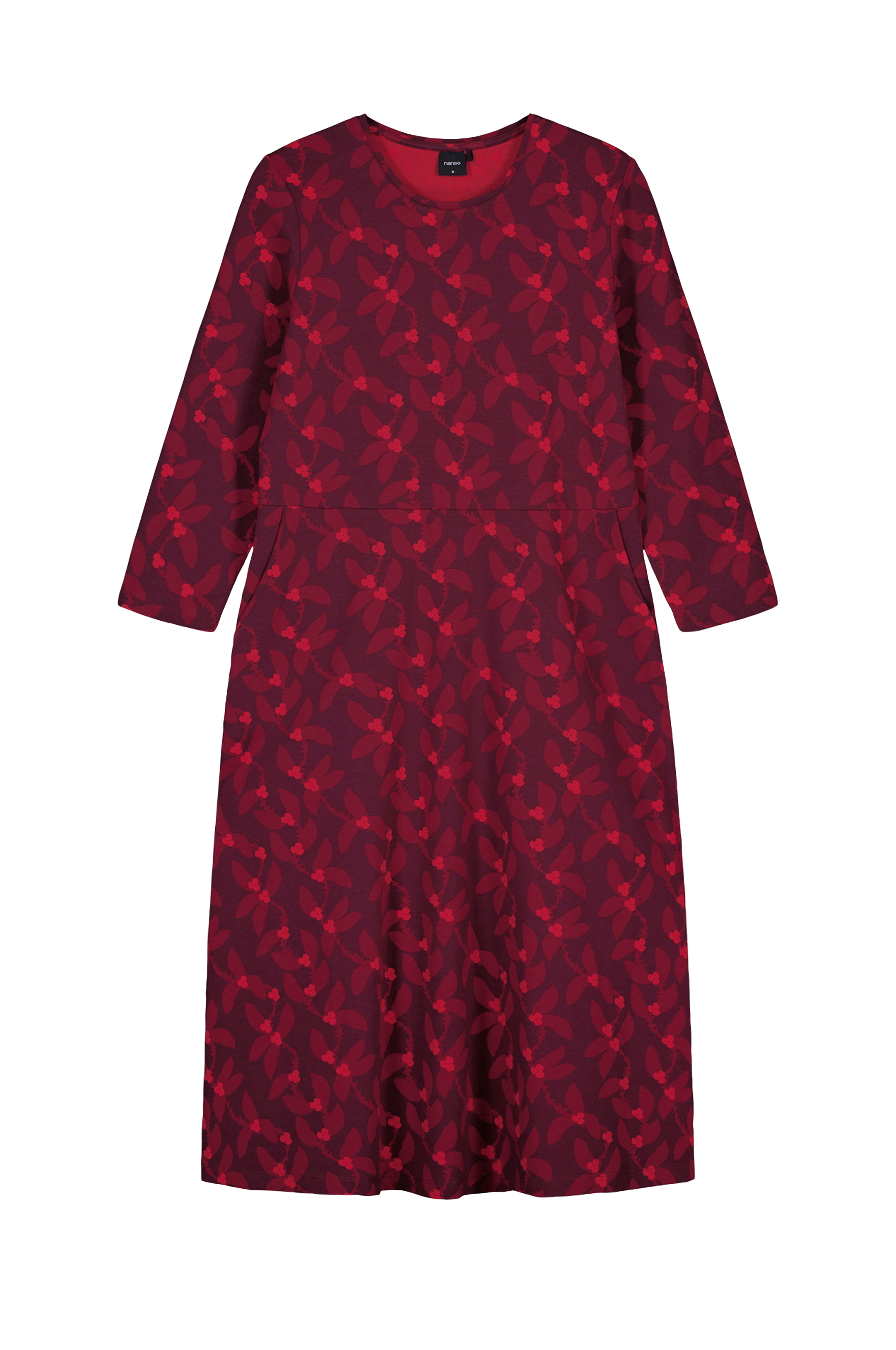 • Elastisk kjole i bomuld• Rund halsudskæring• 3/4 lange ærmer• Udskæring ved taljen• Sidelommer• Længde: 112 cm i størrelse S