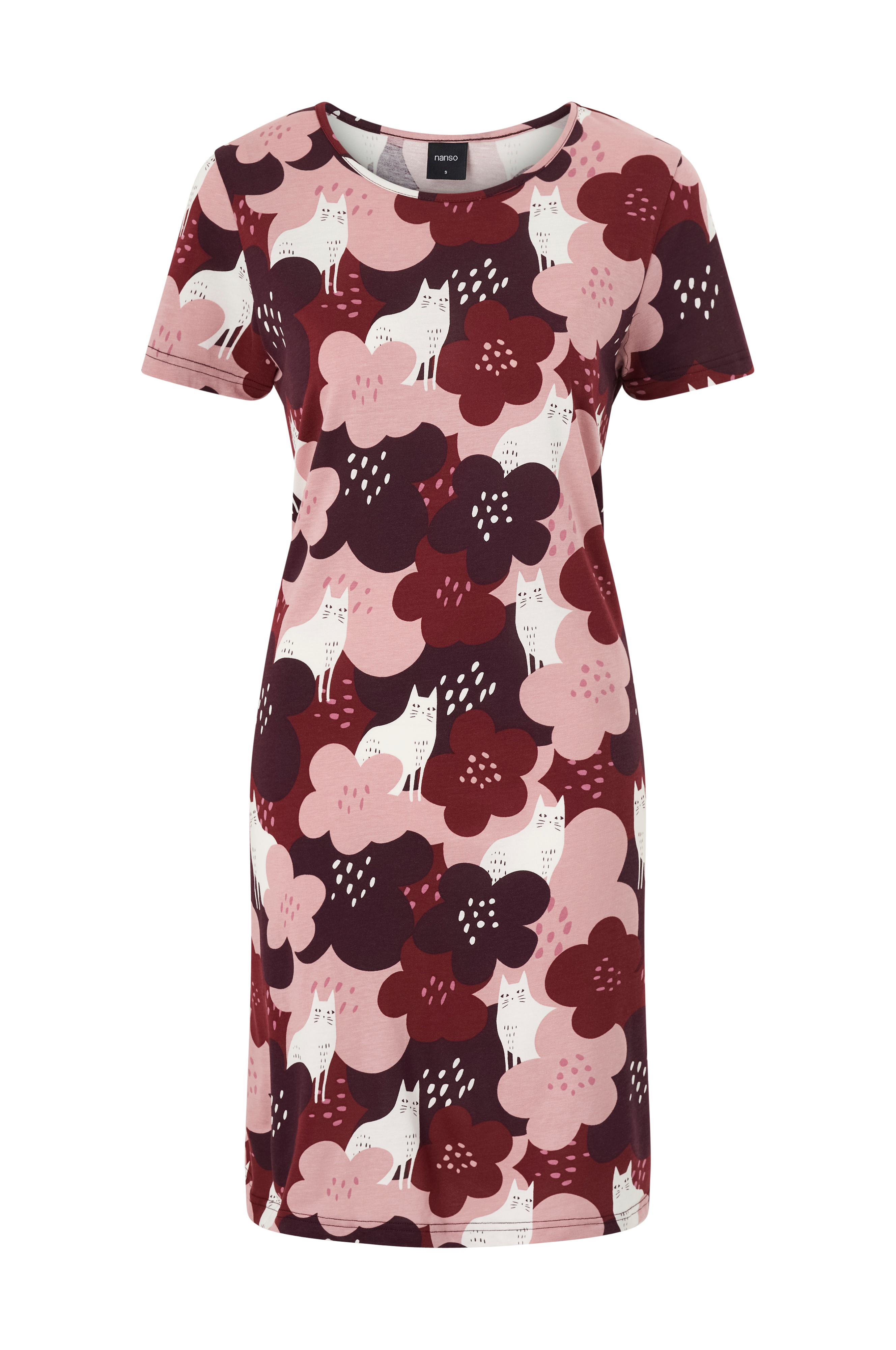 • Lang model med svaj med kort ærme• Rund hals med lille kant