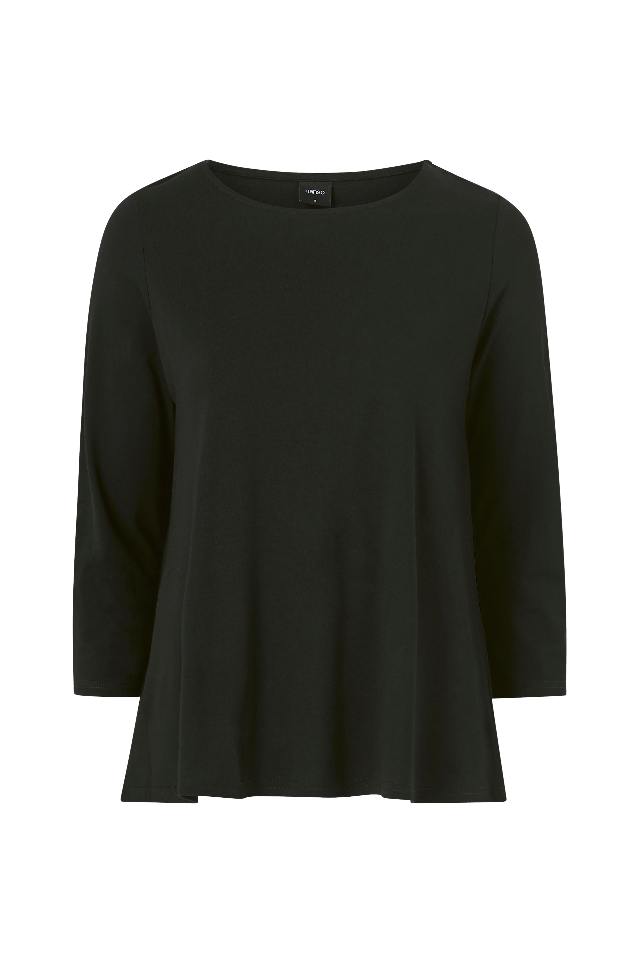 Top i viskosejersey. A-formet model med 3/4-lange ærmer og rund hals.
