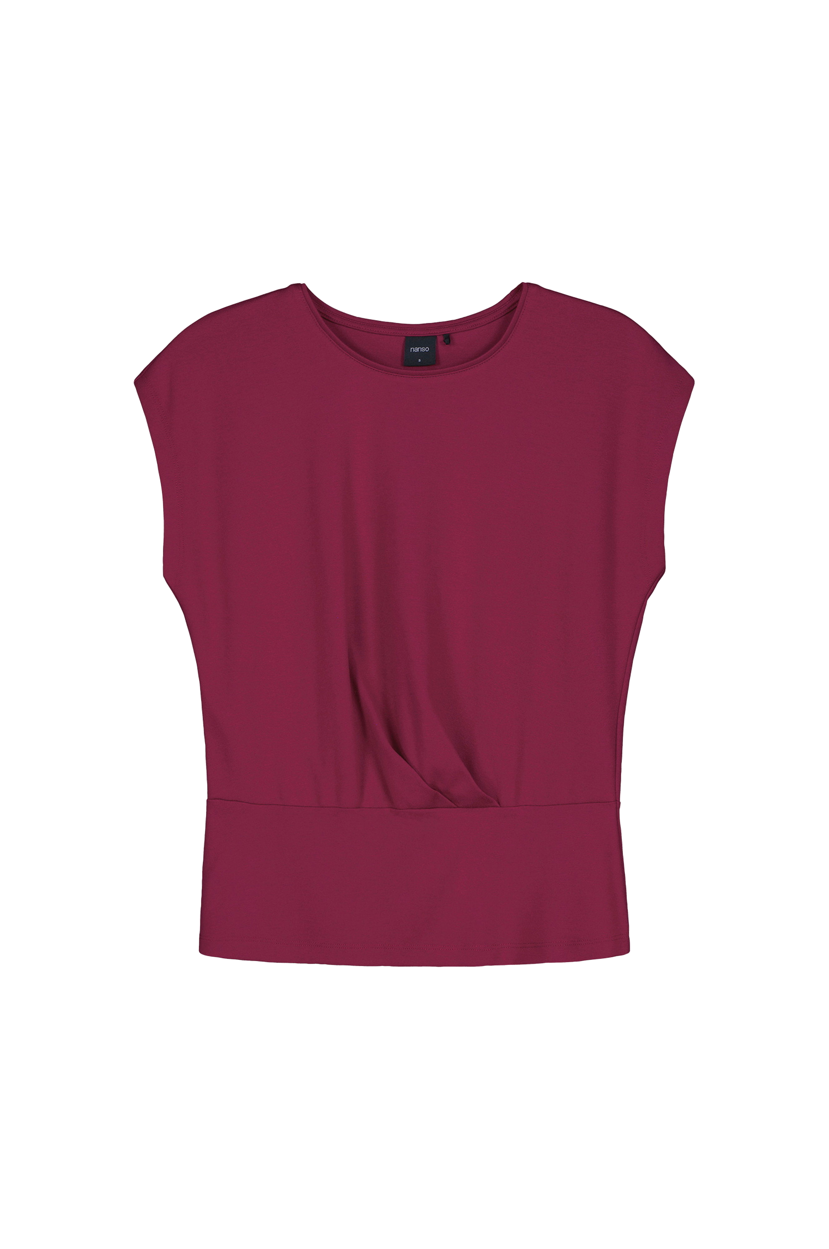 • Blød, let skinnende top i viskoseblanding• Rund halsudskæring• Korte ærmer• Defineret talje med drapering på toppen