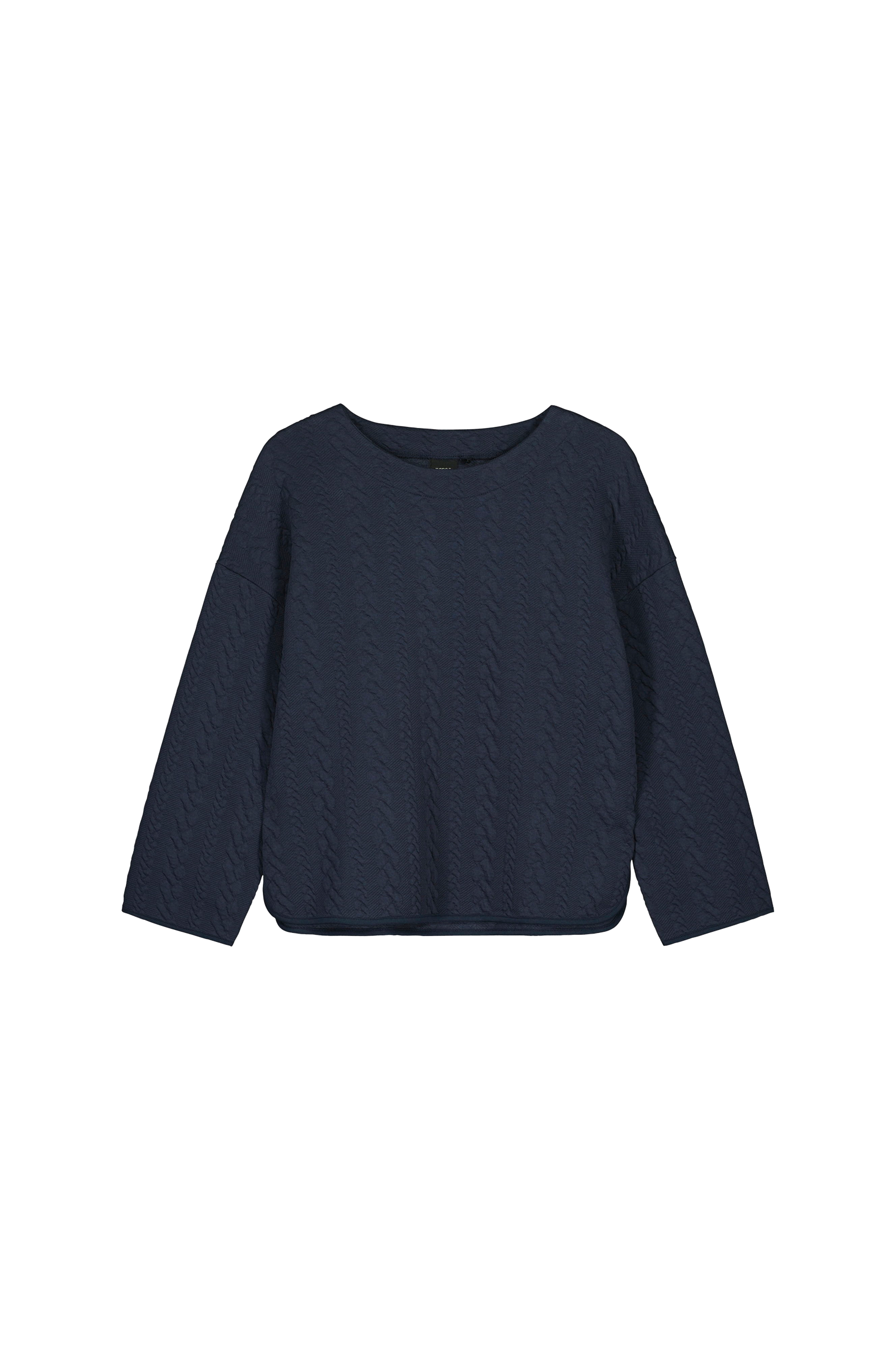 • Langærmet, mønstervævet top i lidt tykkere materiale• Bred, rund halsudskæring• Slids nede i siderne