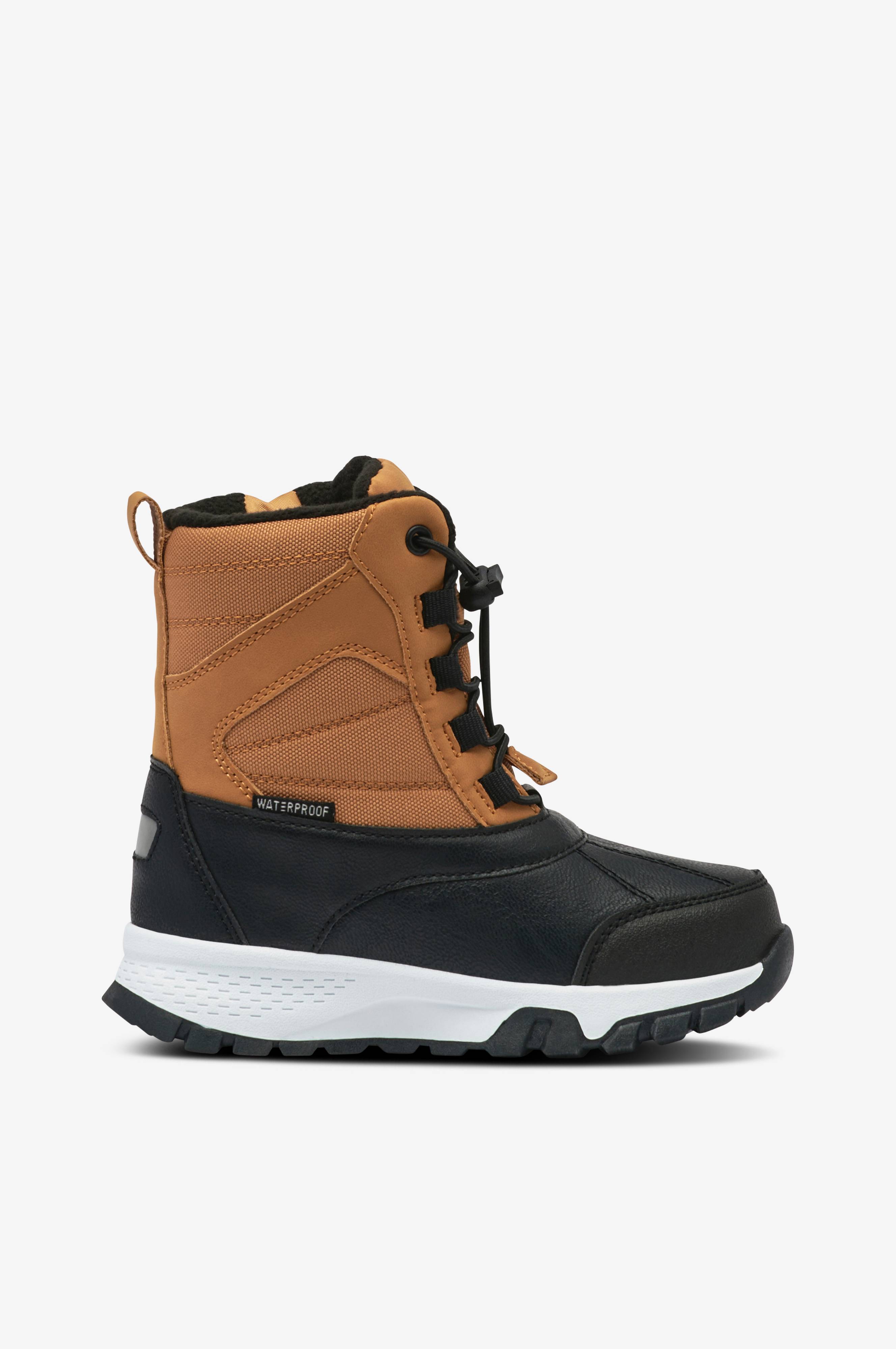• Vandtætte, varmt forede ankelstøvler med øvredel i tekstil og kunststof• Snøring med stopper• Lynlås på indersiden af skaftet• Blød, varmende tekstilforing• Skridsikker ydersål i gummi