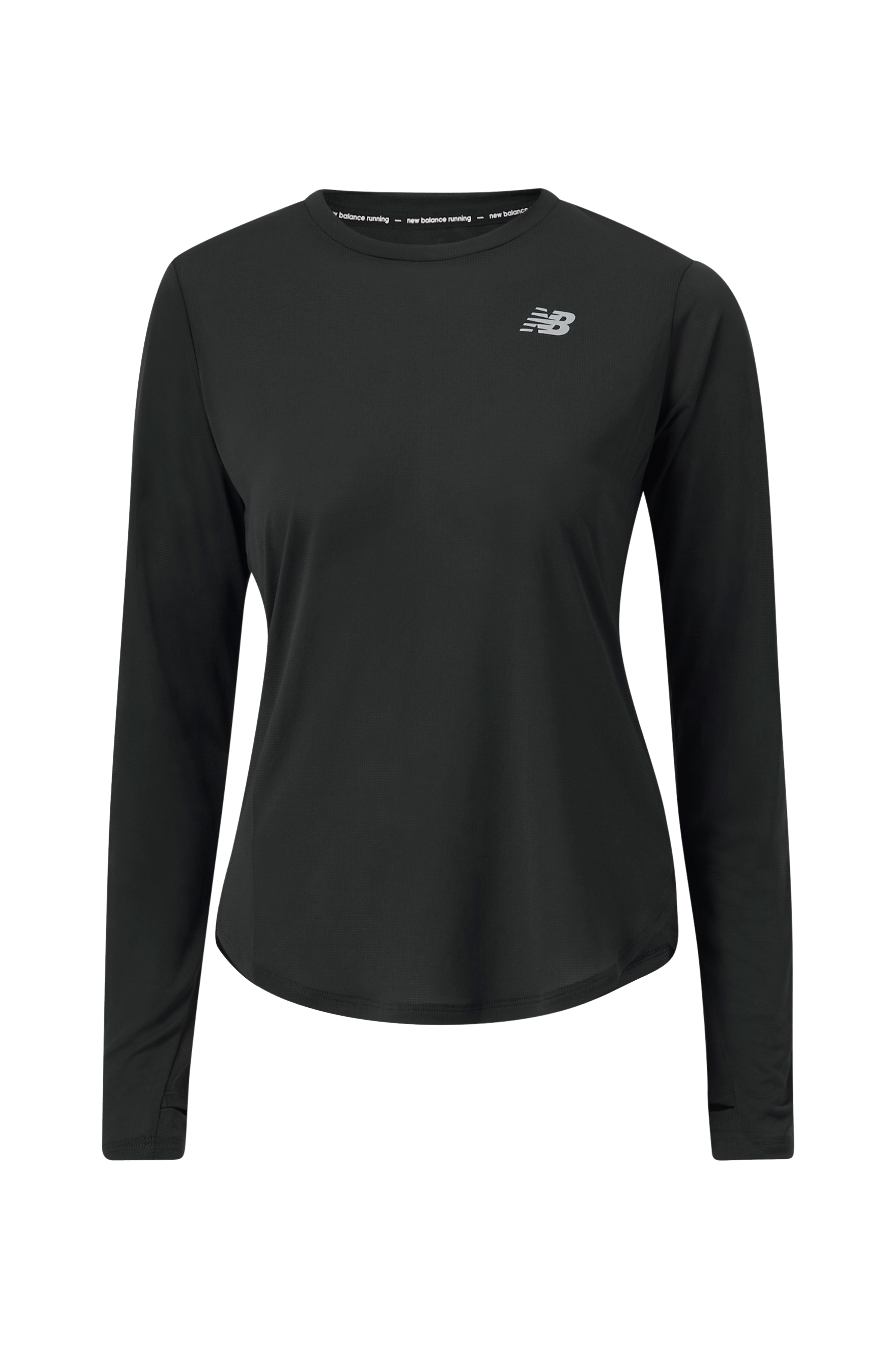 Langærmet løbetop i let stretchmateriale med NB Dry-teknologi som transporterer fugt væk. Rund hals.