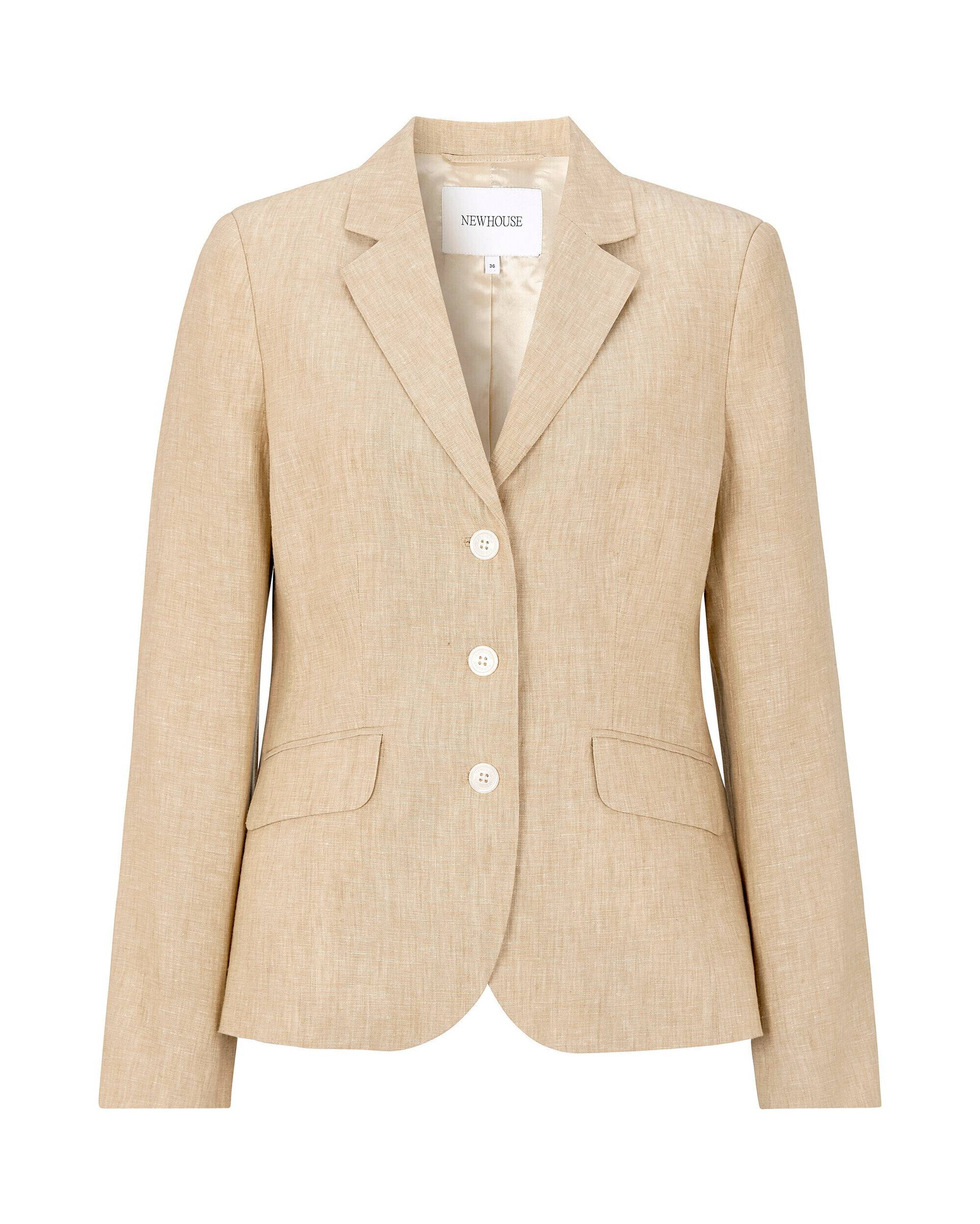 Klassisk, velforarbejdet hørblazer med tre knapper i en flatterende pasform. Blazeren er fuldt foret med et smagfuldt udvalgt for og kontrastfarvet piping og lukkes med perlemorsknapper.